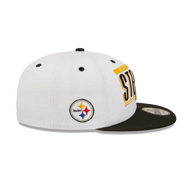 Agrega a tu colección vintage esta 9FIFTY de Pittsburgh Steelers Retro Title. Presenta un logotipo oversize de los Steelers bordado en los paneles frontales y un parche con el logo del equipo en el lado derecho. Cómprala ya.