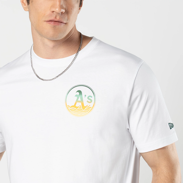 Este Playera Manga Corta New Era de Athletics de la colección MLB Summer presenta el logotipo de los Athletics en la parte frontal izquierda, el nombre y logo del equipo junto con unas palmeras y ondas de mar en la parte de atrás, y el flag de New Era bordado en la manga izquierda. Cómprala ya.