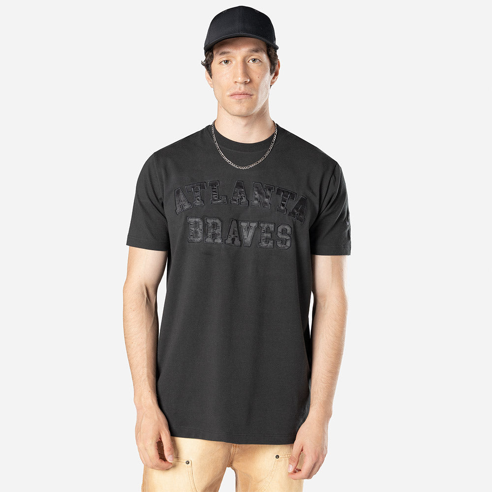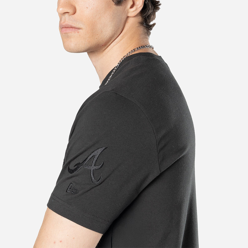 Esta Playera Manga Corta New Era de Atlanta Braves de la colección MLB Logo Select Black on Black presenta un diseño en color negro con el nombre de los Braves en la parte frontal, el logo del equipo y el flag de New Era bordados en la manga izquierda. Completa tu outfit y cómprala ya.