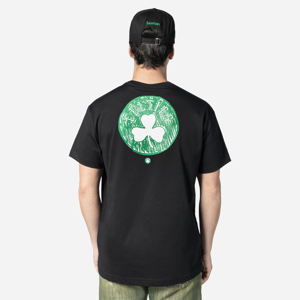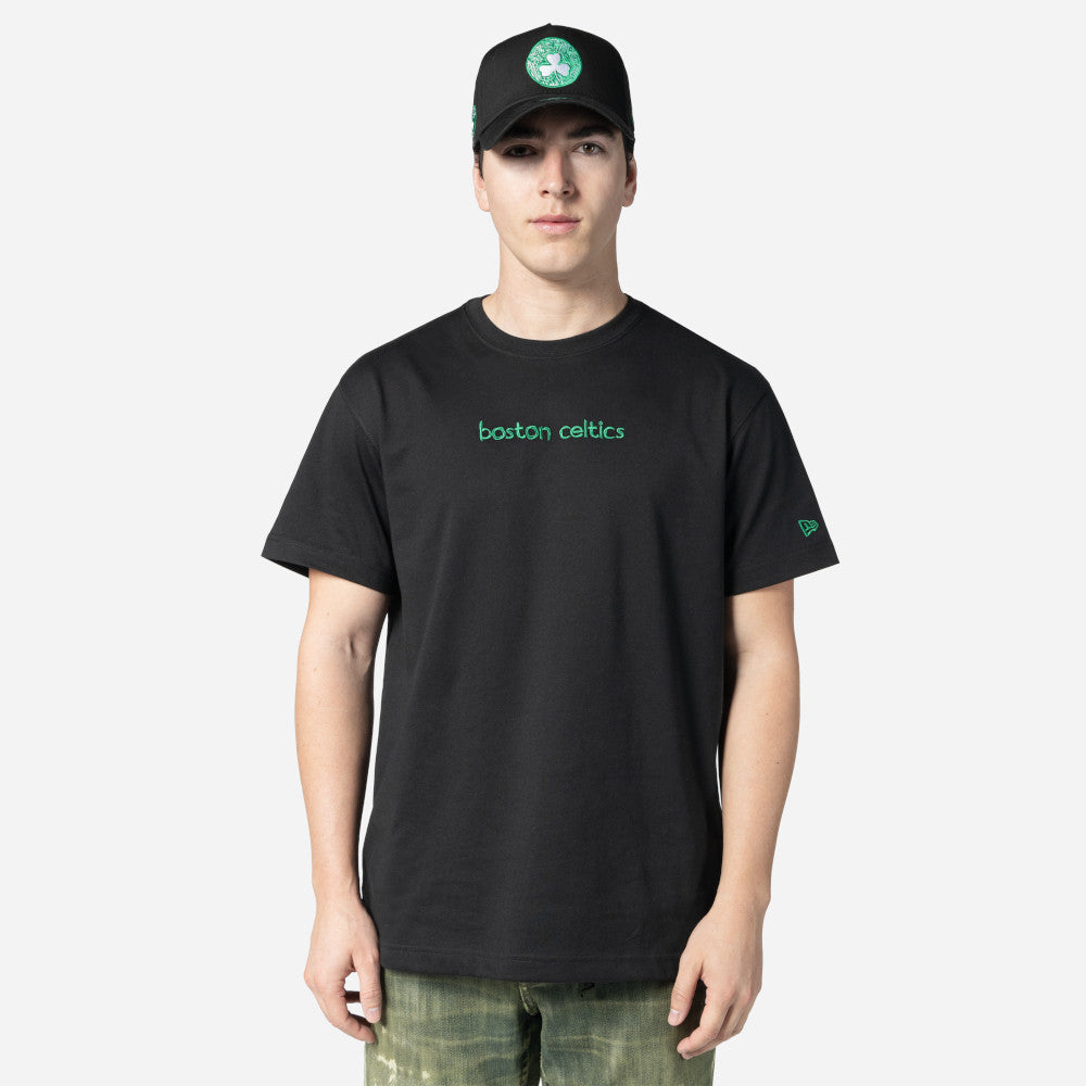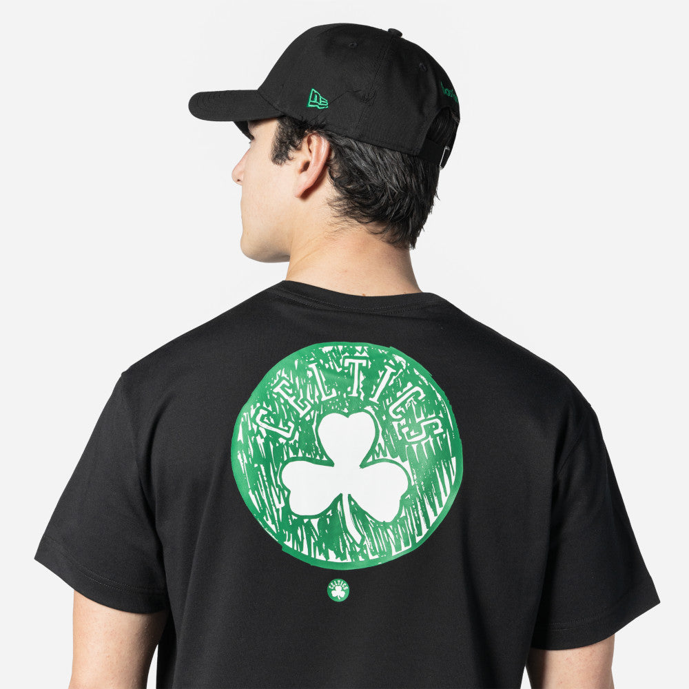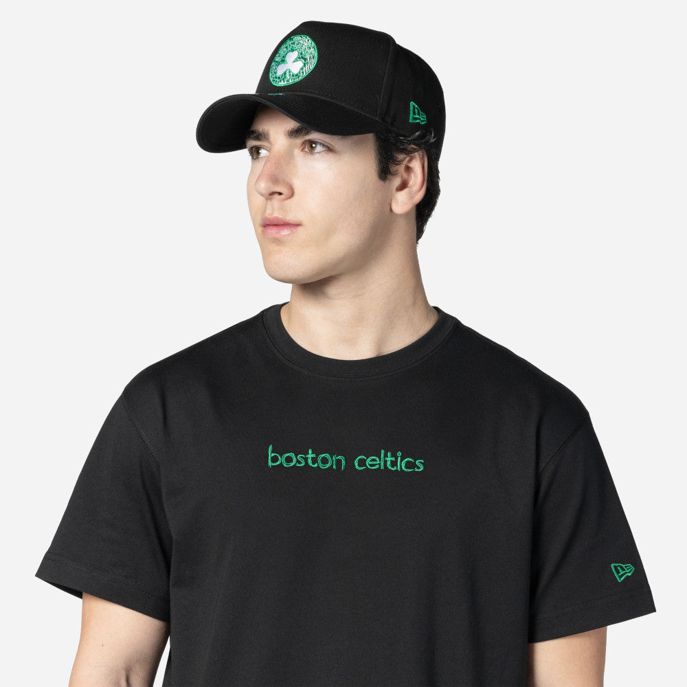 Esta Playera Manga Corta New Era de Boston Celtics de la colección NBA Doodles presenta el nombre de los Celtics en la parte frontal, el logotipo del equipo con diseño de dibujo estampado en grande al reverso acompañado de su versión normal en pequeño y el flag de New Era bordado en la manga izquierda. Luce con estilo y cómprala ya.