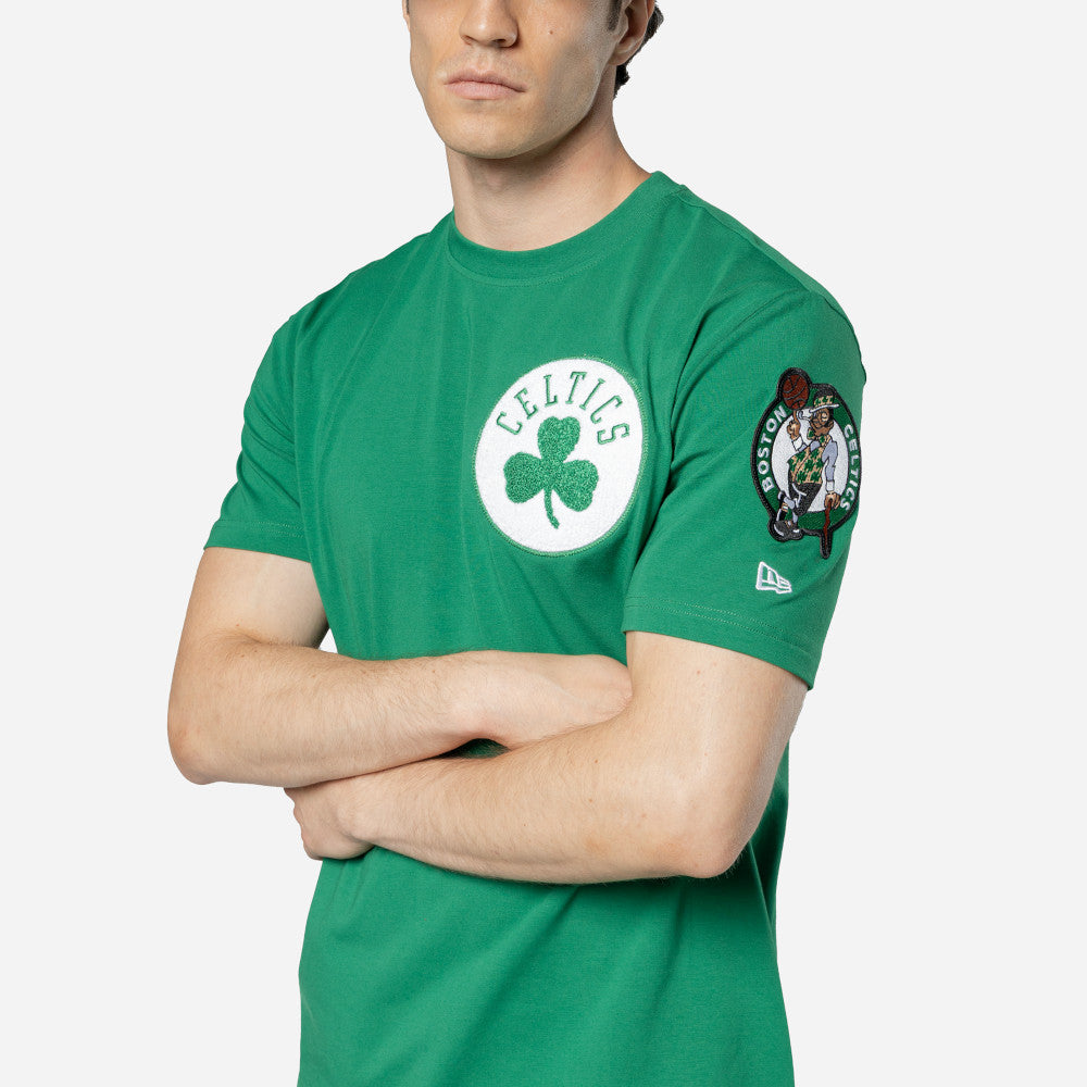 Esta Playera Manga Corta New Era de Boston Celtics de la colección NBA Evergreen presenta el logotipo de los Celtics bordado en la parte frontal izquierda, el logo del equipo y el flag de New Era bordado en la manga izquierda. Cómprala ya.