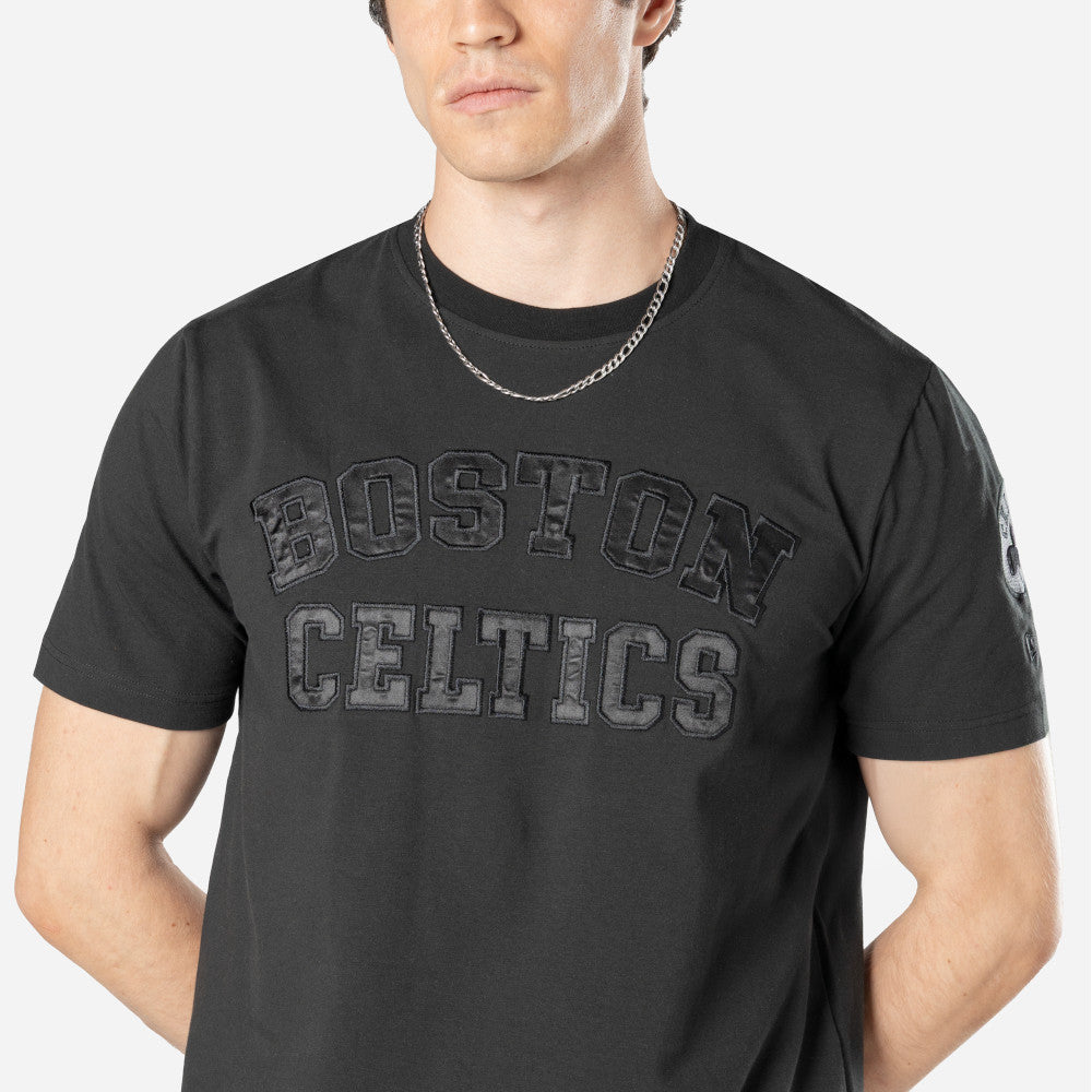 Esta Playera Manga Corta New Era de Boston Celtics de la colección NBA Logo Select Black on Black presenta un diseño en color negro con el nombre de los Celtics en la parte frontal, el logo del equipo y el flag de New Era bordados en la manga izquierda. Completa tu outfit y cómprala ya.