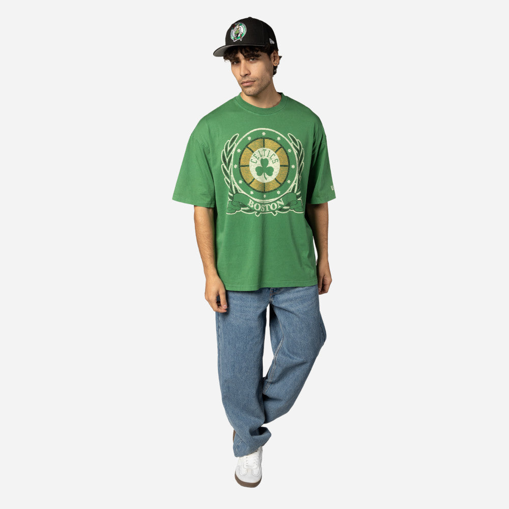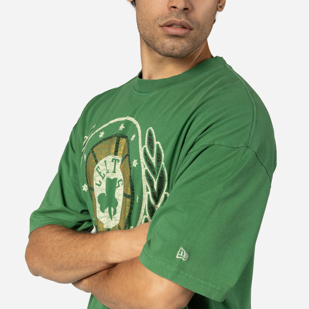 Esta Playera Manga Corta New Era de Boston Celtics de la colección NBA Oversized Essentials presenta un diseño con el logotipo y nombre de los Celtics estampados en la parte frontal y el flag de New Era bordado en la manga izquierda. Luce con estilo y cómprala ya.