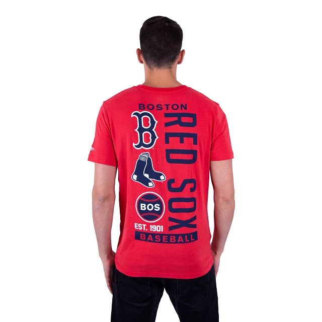 Playera New Era 100% algodón con variaciones del logo del equipo y el nombre en la parte de atrás y el logo del equipo en la parte de enfrente en el pecho al centro en screen print. Terminado con el bordado directo de la bandera de New Era en la manga izquierda.