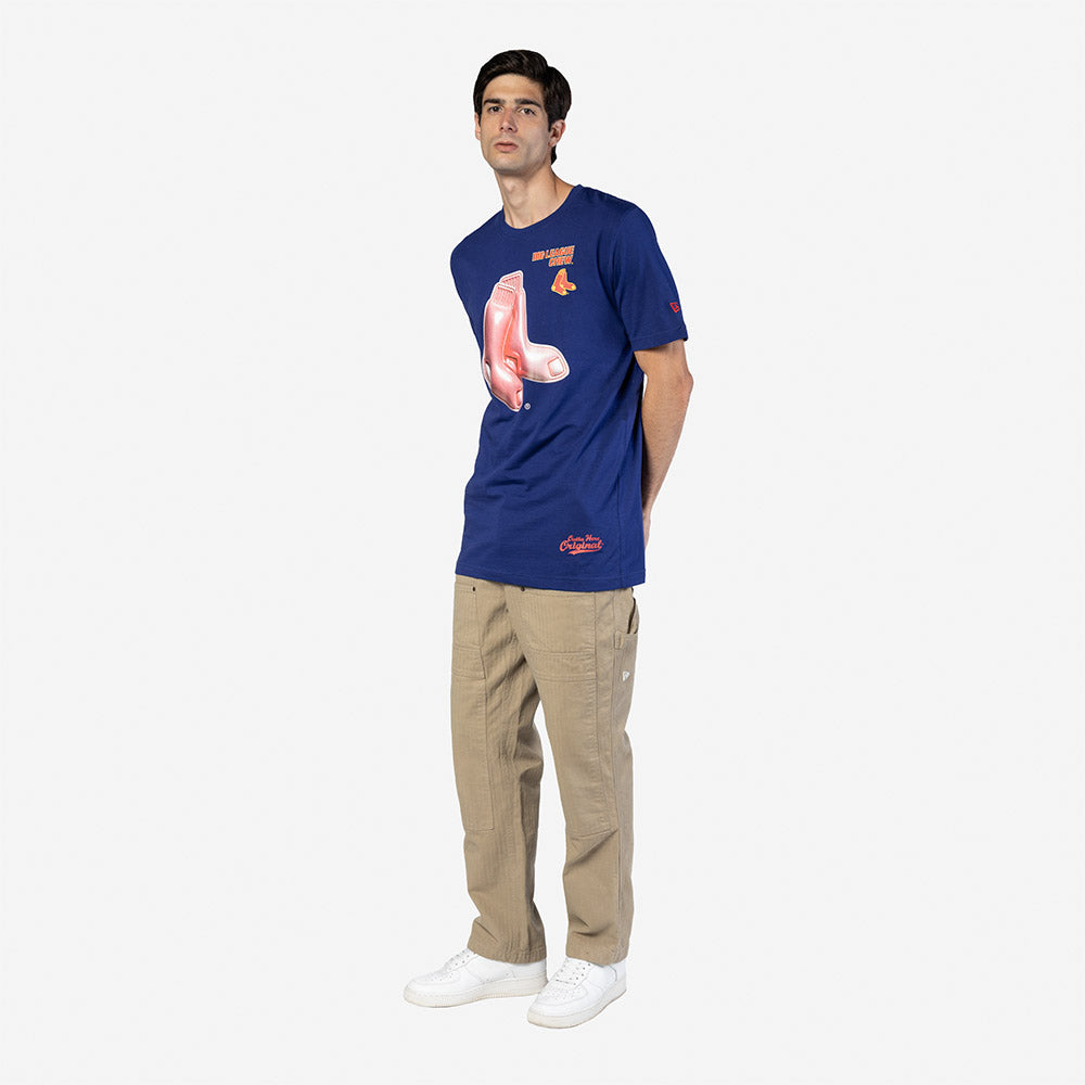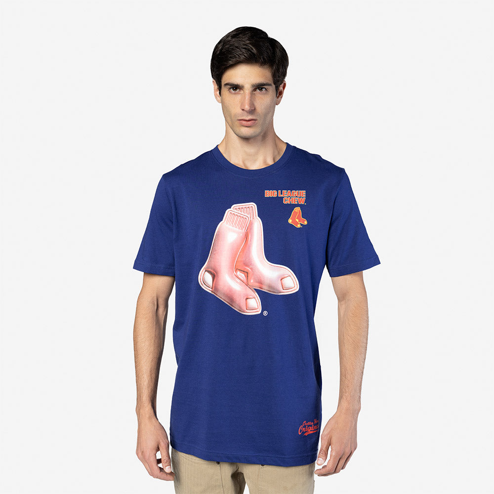 Esta Playera Manga Corta New Era de Boston Red Sox de la colección Big League Chew X MLB presenta un diseño azul con el logotipo de los Red Sox estilo chicle en la parte frontal, el nombre de la colaboración , y el flag de New Era bordado en la manga izquierda. No te pierdas este artículo y cómprala ya.