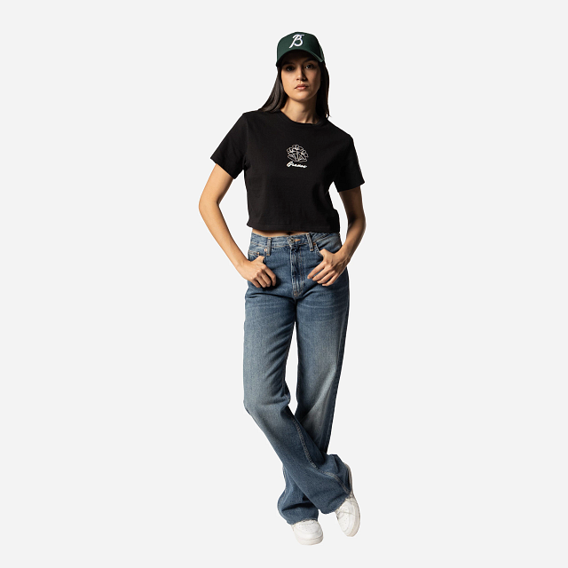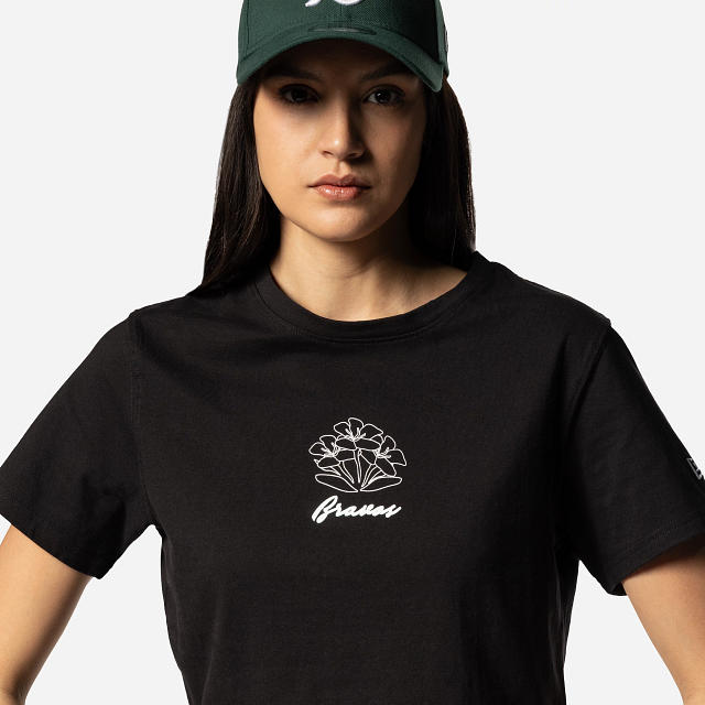 Apoya a tu equipo favorito con estilo con esta Playera Manga Corta para Mujer de Bravos de León de la colección LMB Invenue que presenta un diseño tipo crop top en color negro con un diseño único que incluye el nombre de Bravos estampado en la parte de en frente, y el flag de New Era bordado en la manga izquierda. ¡No te quedes fuera del diamante y cómprala ya!