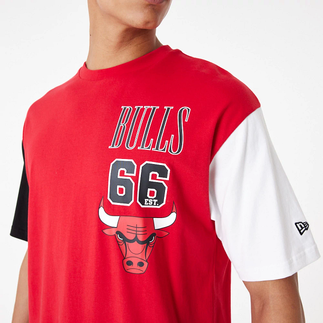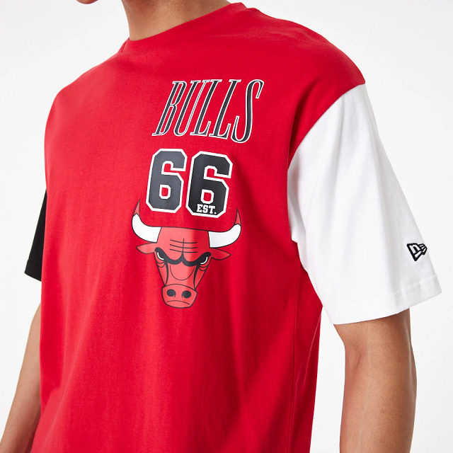 Esta Playera Manga Corta New Era de Chicago Bulls de la colección NBA Fashion Lifestyle presenta el torso rojo con el logotipo, nombre y año de fundación de los Bulls estampados al frente, las mangas con los colores del equipo y el flag de New Era bordado en la manga izquierda. Dale un toque a tu outfit y cómprala ya.