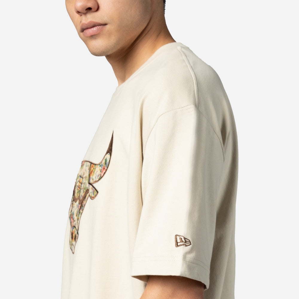 Esta Playera Manga Corta New Era de Chicago Bulls de la colección NBA Upholstered Athletics presenta un diseño con el logotipo de los Bulls con detalles florales en la parte frontal y el flag de New Era bordado en la manga izquierda. Cómprala ya.