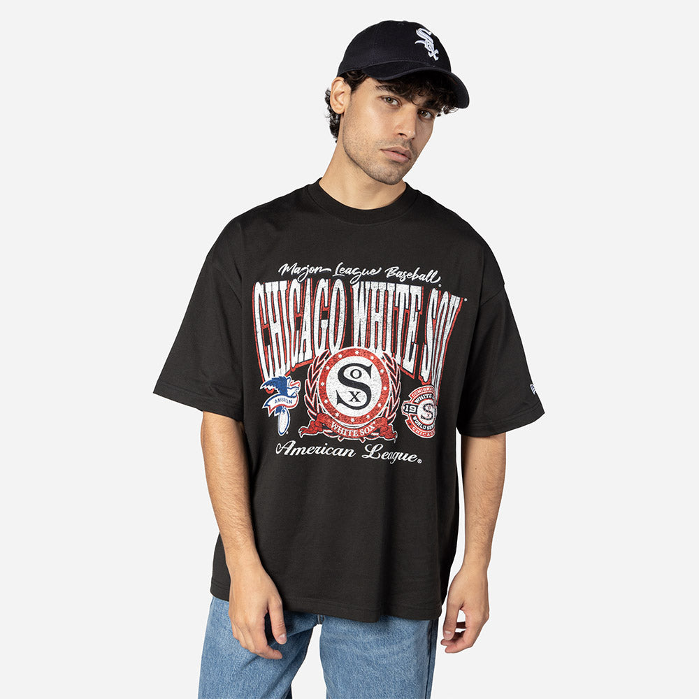 Esta Playera Manga Corta New Era de Chicago White Sox de la colección MLB Oversized Essentials presenta un diseño con el nombre, logotipo y detalles representativos de los White Sox estampados en la parte frontal y el flag de New Era bordado en la manga izquierda. Luce con estilo y cómprala ya.