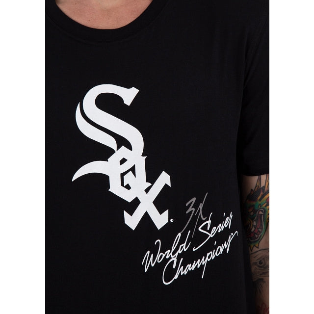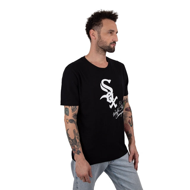 Esta Playera Manga Corta de Chicago White Sox World Champions presenta un logotipo del equipo al frente en el pecho y gráficos impresos de la Serie Mundial, celebrando el legado de la franquicia. Cómprala ya.