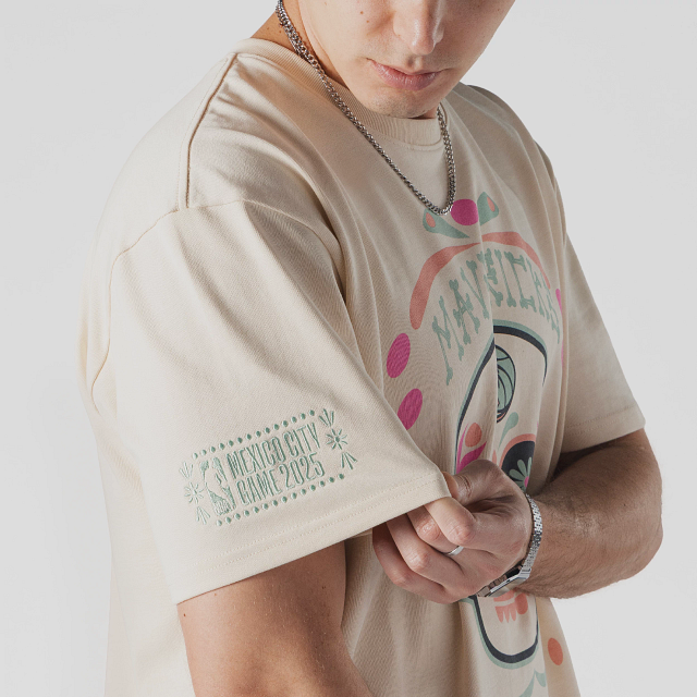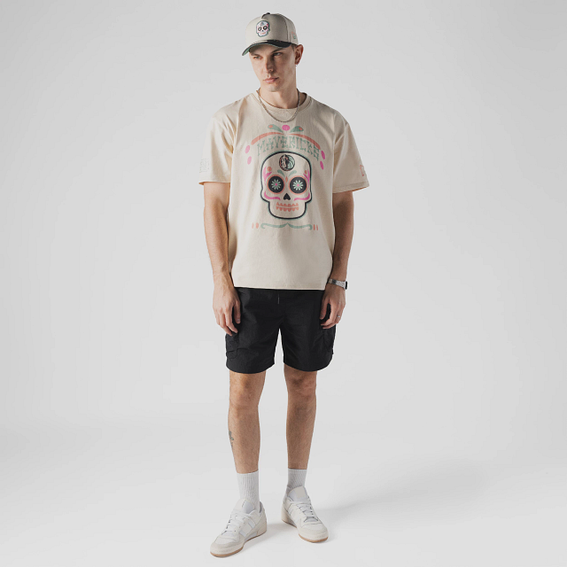 Esta Playera Manga Corta New Era de Dallas Mavericks de la colección NBA Mexico City Game 2025 presenta el nombre de los Mavericks y una calaverita de azúcar con el logotipo del equipo en la parte frontal, NBA Mexico City Game 2025 en la manga derecha, el logo de la NBA en la parte de atrás del cuello y el flag de New Era bordado en la manga izquierda. Cómprala ya.