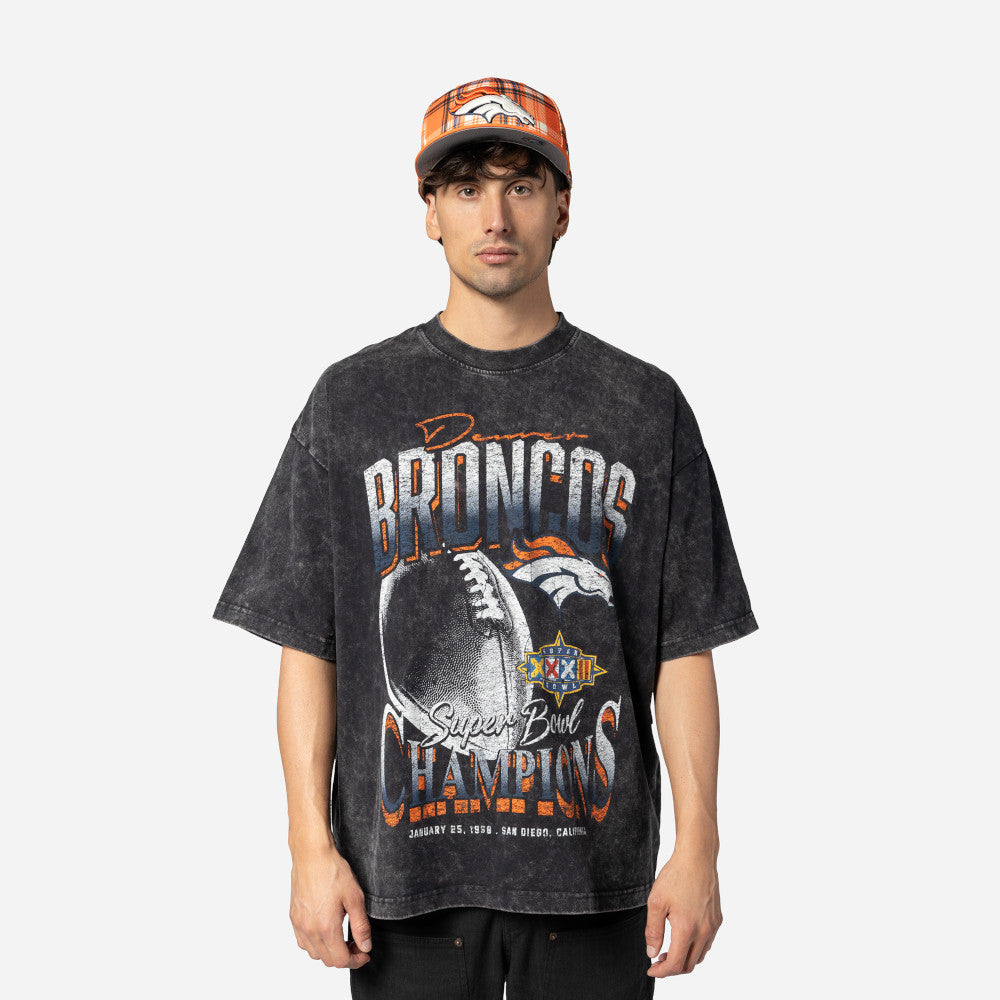 Esta Playera Manga Corta New Era de Denver Broncos de la colección NFL Sports Classics presenta un diseño en color negro con un efecto deslavado, un estampado representativo de los Broncos en la parte frontal y el flag de New Era bordado en la manga izquierda. Completa tu outfit y cómprala ya.