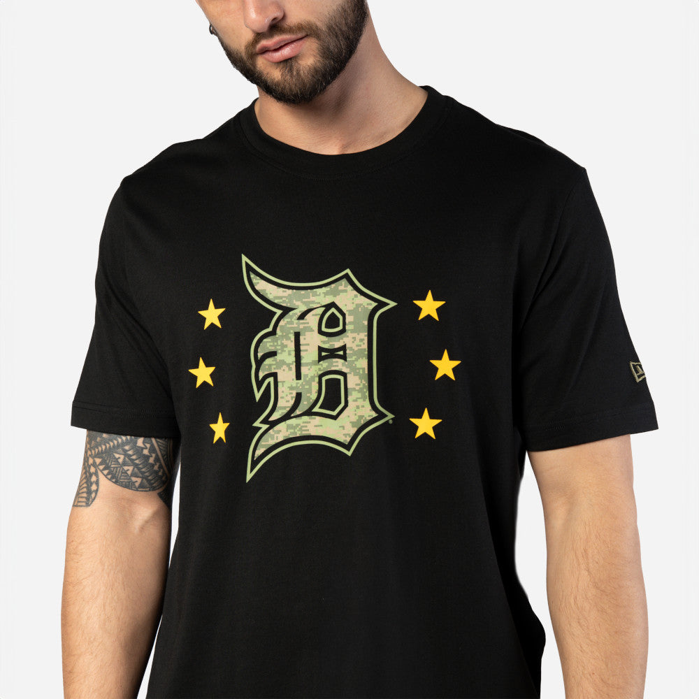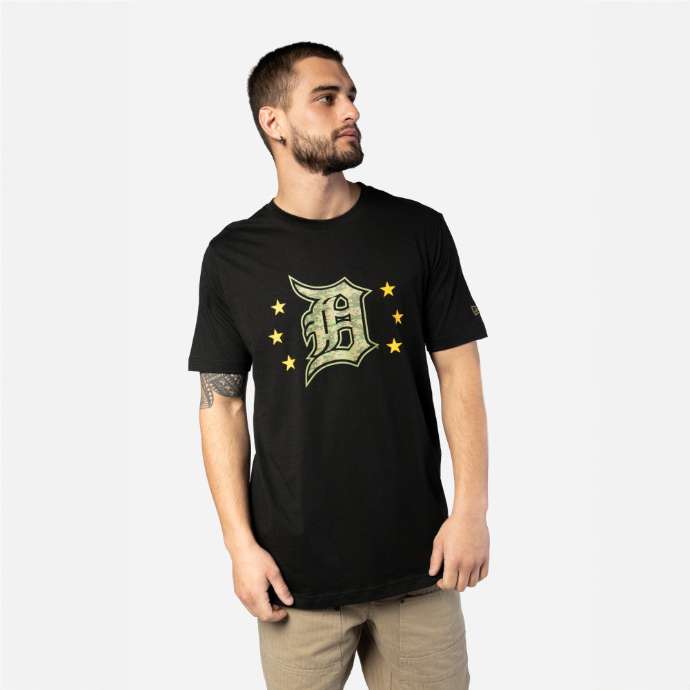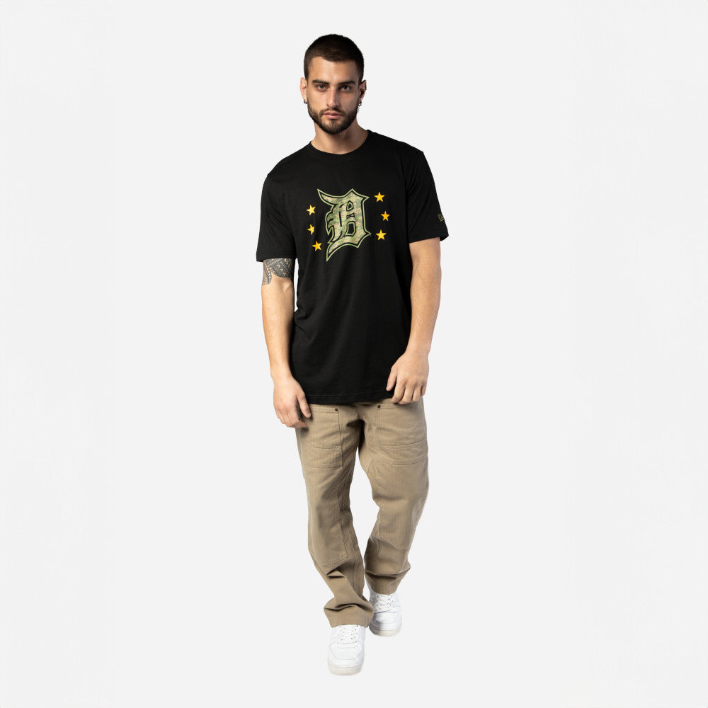 Esta Playera Manga Corta New Era de Detroit Tigers de la colección MLB Armed Forces Day 2024 presenta un diseño negro con el logotipo de los Tigers camuflajeado estampado en el frente rodeado de estrellas doradas y el flag de New Era bordado en el lado izquierdo. Luce con estilo y cómprala ya.