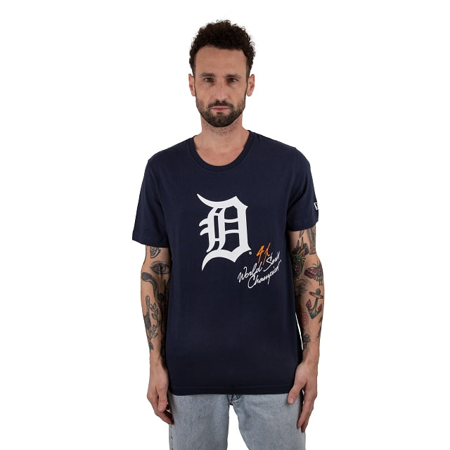 Esta Playera Manga Corta de Detroit Tigers World Champions presenta un logotipo del equipo al frente en el pecho y gráficos impresos de la Serie Mundial, celebrando el legado de la franquicia. Cómprala ya.