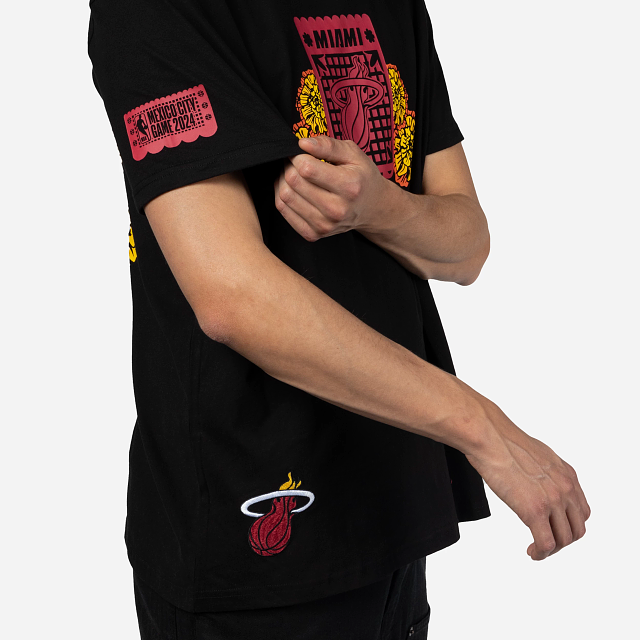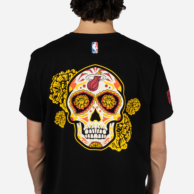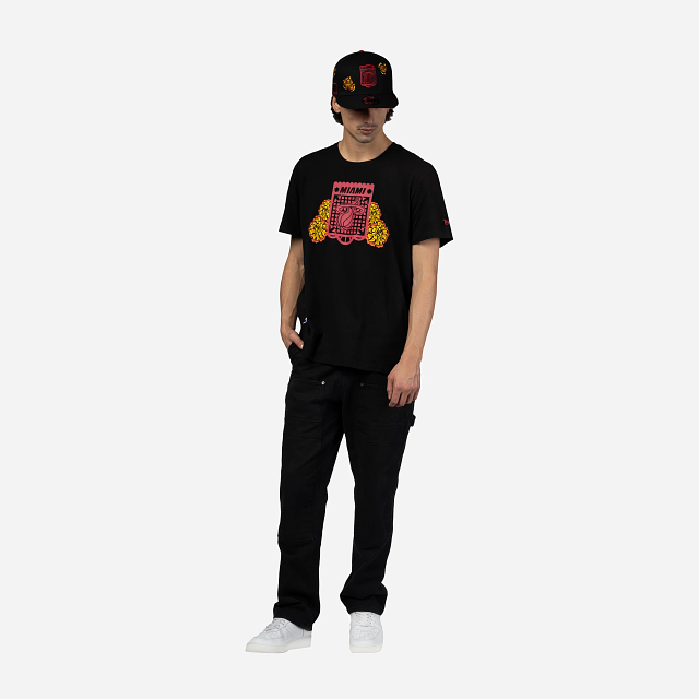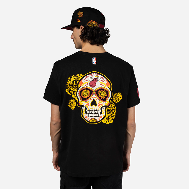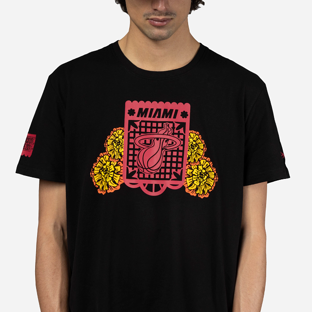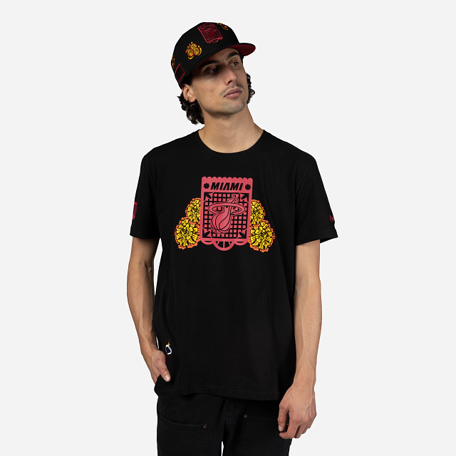 Esta Playera Manga Corta New Era de Miami Heat de la colección NBA Mexico City Game 2024 presenta un diseño inspirado en el Día de Muertos con el logotipo de los Heat en forma de papel picado estampado en la parte frontal, una calaverita al reverso y el flag de New Era bordado en la manga izquierda. Luce con estilo y cómprala ya.