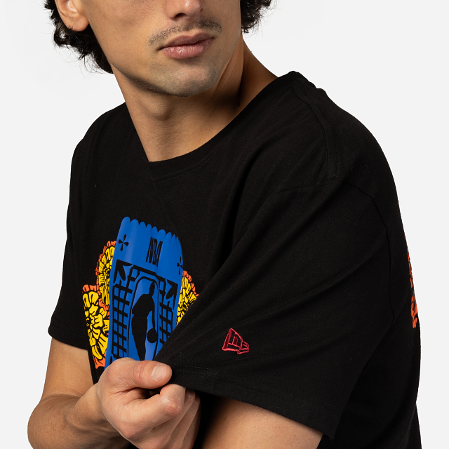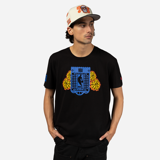 Esta Playera Manga Corta New Era de la colección NBA Mexico City Game 2024 presenta un diseño inspirado en el Día de Muertos con el logotipo de la NBA en forma de papel picado en la parte frontal, una calaverita al reverso y el flag de New Era bordado en la manga izquierda. Luce con estilo y cómprala ya.