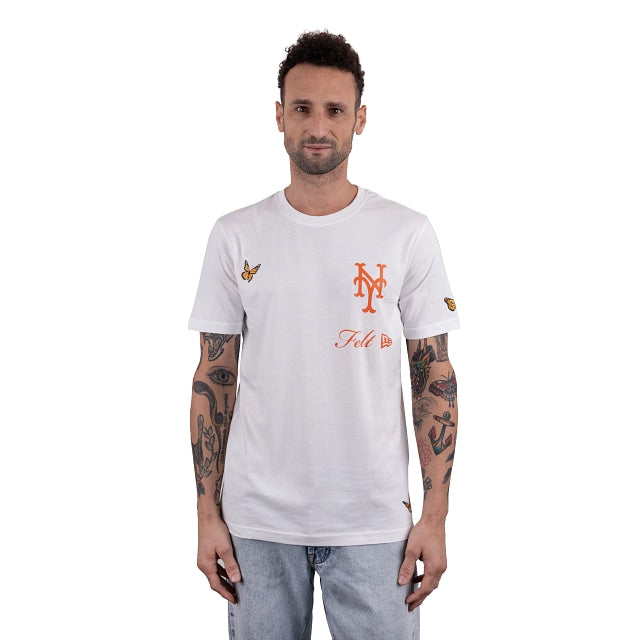 For Every Living Thing. Esta Playera Manga Corta de Felt X New York Mets presenta el logotipo del equipo bordado en los paneles frontales con bordados inspirados en la naturaleza en toda la corona y una inscripción FELT en la parte trasera. Cómprala ya.