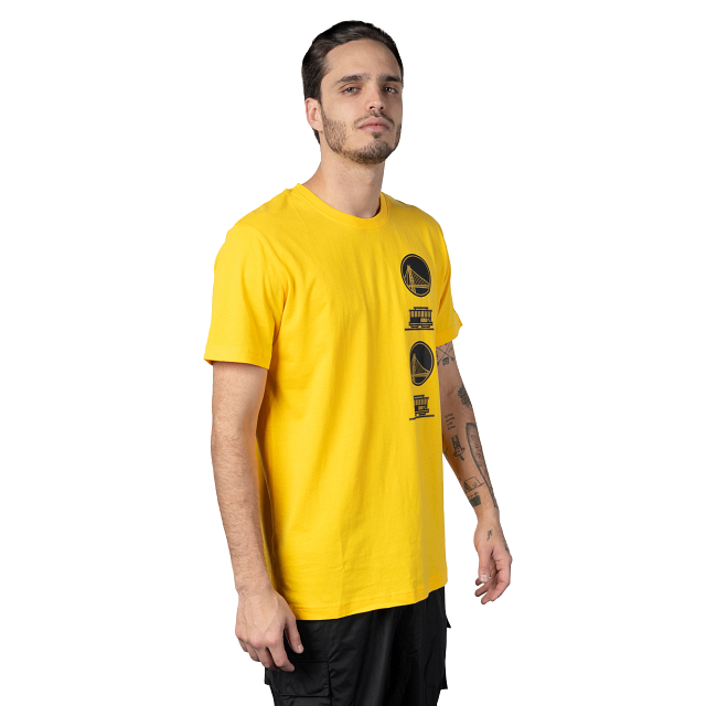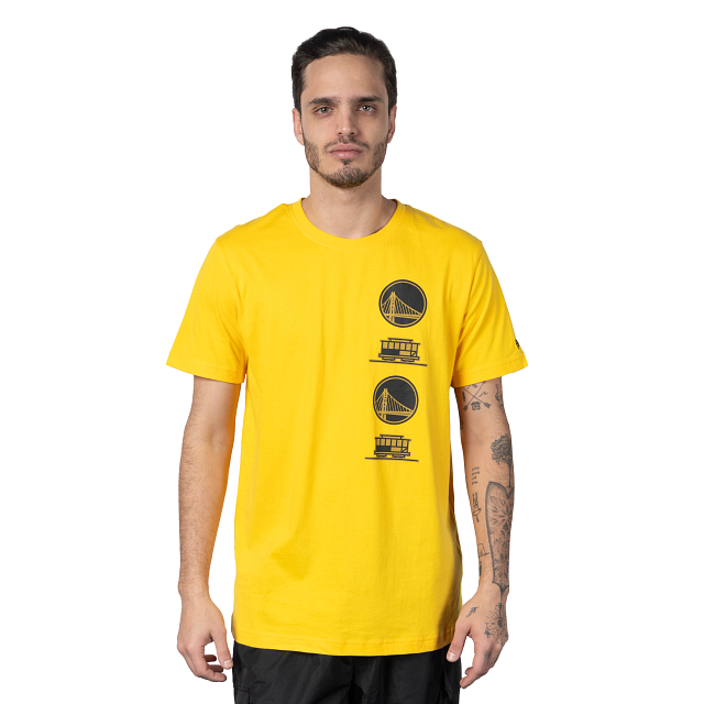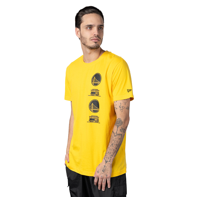 Esta Playera Manga Corta New Era de Golden State Warriors de la colección NBA City Edition presenta un diseño del color del equipo con múltiples logotipos de los Warriors estampados al frente, y el flag de New Era bordado en la manga izquierda. Dale un toque a tu outfit y apoya a tu equipo. Cómprala ya.