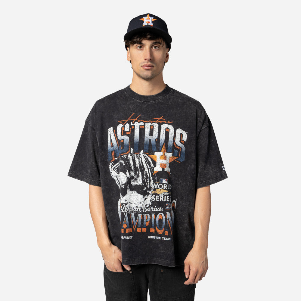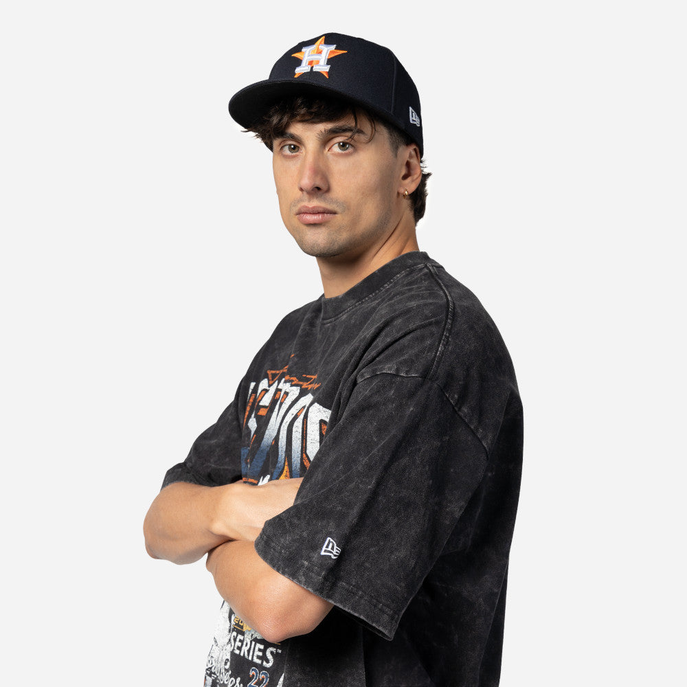 Esta Playera Manga Corta New Era de Houston Astros de la colección MLB Sports Classics presenta un diseño en color negro con un efecto deslavado, un estampado representativo de los Astros en la parte frontal y el flag de New Era bordado en la manga izquierda. Completa tu outfit y cómprala ya.