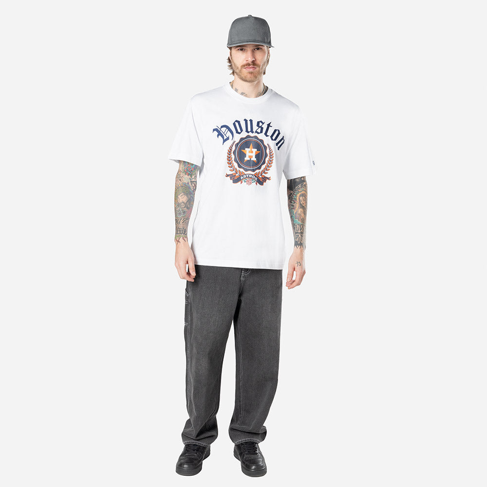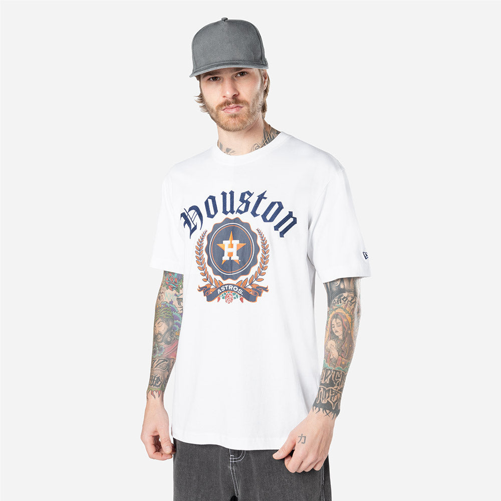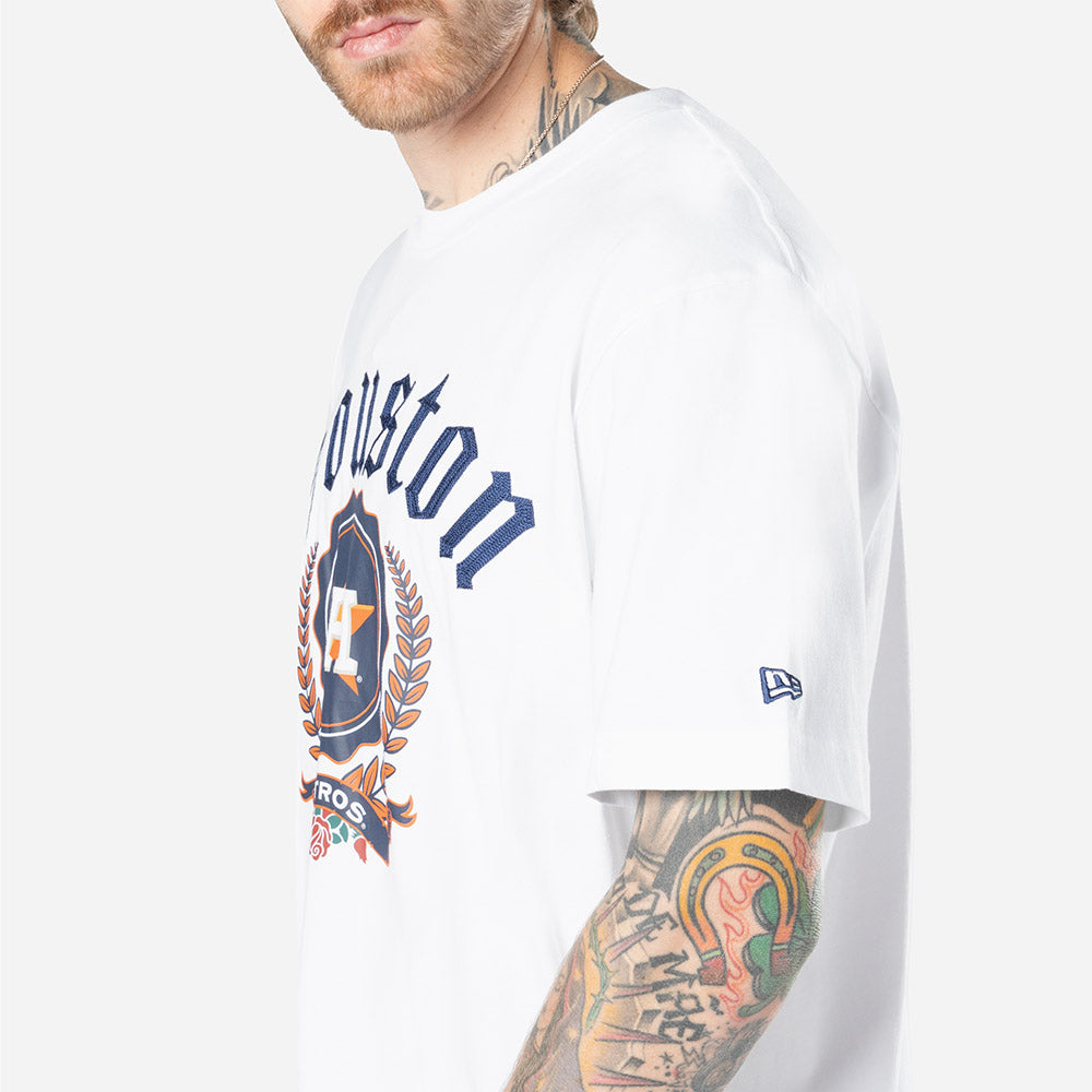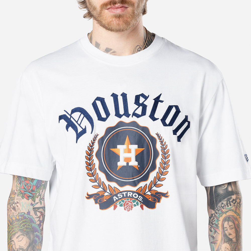 Esta Playera Manga Corta New Era de Houston Astros de la colección MLB Throwback Prep presenta el nombre de los Astros bordado junto con su logotipo estampado en la parte frontal y el flag de New Era bordado en la manga izquierda. Cómprala ya.