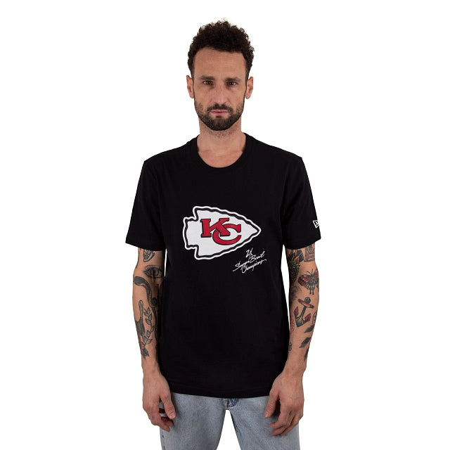 Esta Playera Manga Corta de Kansas City Chiefs World Champions presenta un logotipo del equipo al frente en el pecho y gráficos impresos del Super Bowl, celebrando el legado de la franquicia. Cómprala ya.