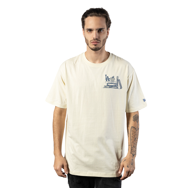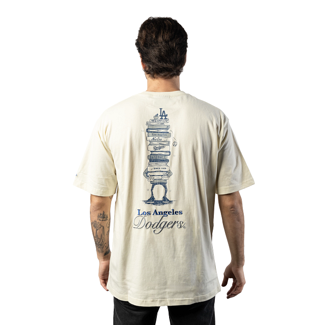 Dale un toque a tu outfit con esta Playera Manga Corta New Era de Los Angeles Dodgers de la colección MLB Book Club que presenta un estampado con libros y el logo de los Dodgers en el pecho y otro en toda la espalda, y el flag de New Era bordado en la manga izquierda. Eleva tu estilo y cómprala ya.