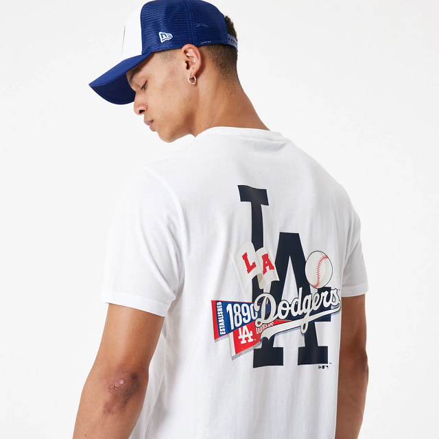 Esta Playera Manga Corta New Era de Los Angeles Dodgers de la colección MLB Graphic presenta una bandera al frente, y el logotipo y nombre de los Dodgers adornando toda la espalda, y el flag de New Era en la manga izquierda. Dale un toque a tu outfit esta temporada y cómprala ya.