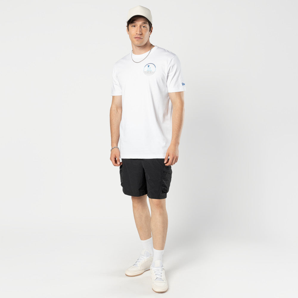 Este Playera Manga Corta New Era de Los Angeles Dodgers de la colección MLB Summer presenta el logotipo de los Dodgers en la parte frontal izquierda, el nombre y logo del equipo junto con unas palmeras y ondas de mar en la parte de atrás, y el flag de New Era bordado en la manga izquierda. Cómprala ya.