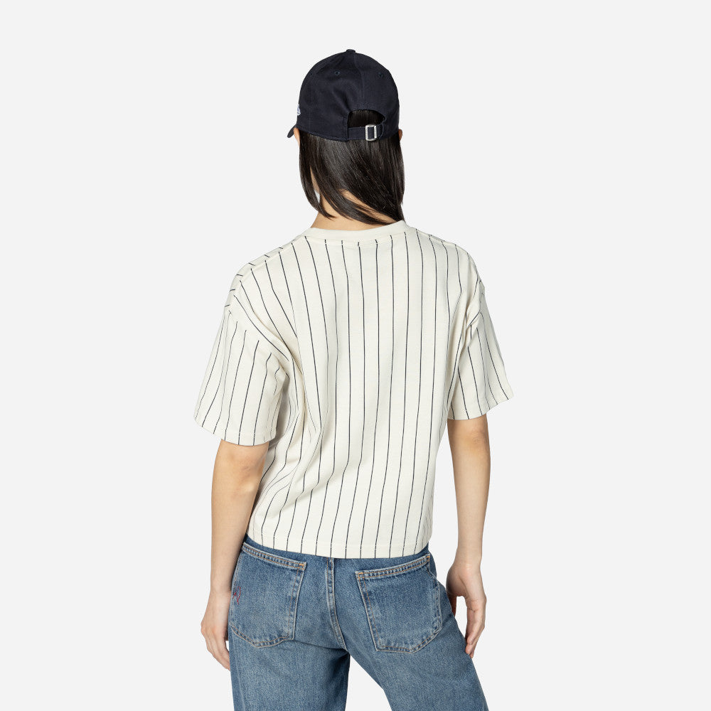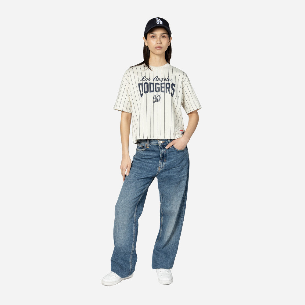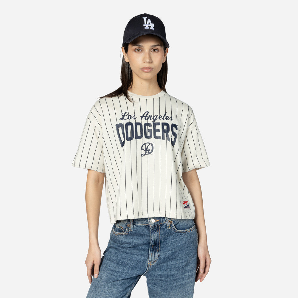 Esta Playera Manga Corta New Era para Mujer de Los Angeles Dodgers de la colección MLB Throwback presenta un diseño a rayas con el nombre y logotipo de los Dodgers en la parte frontal. Cómprala ya.