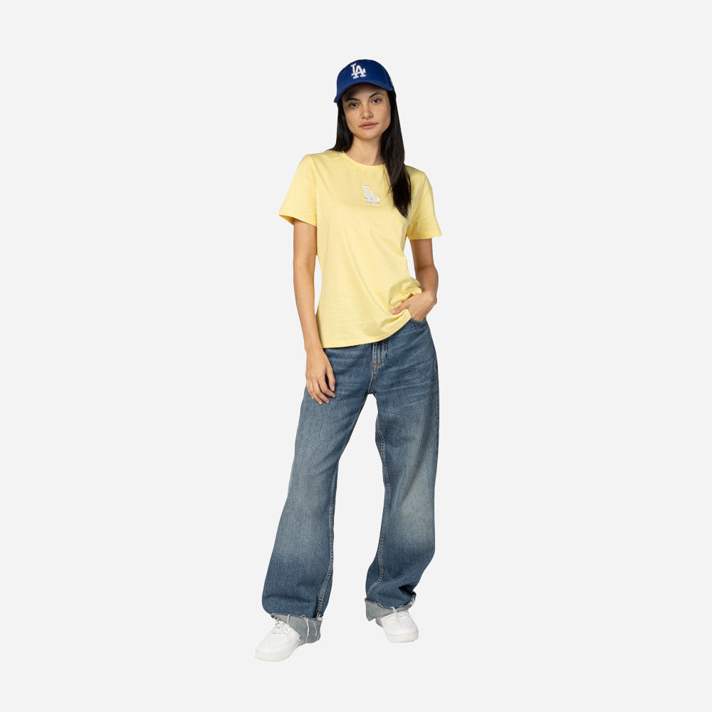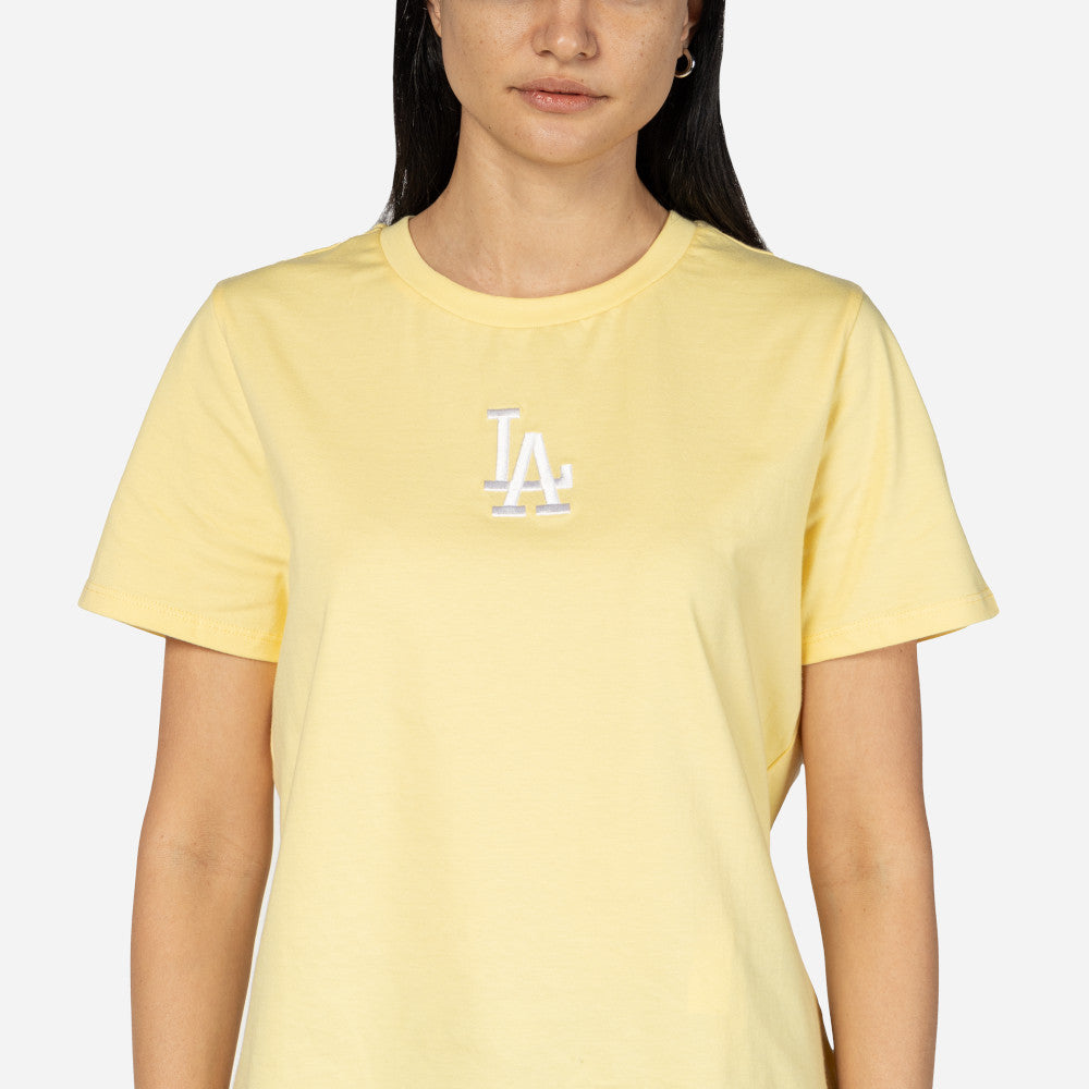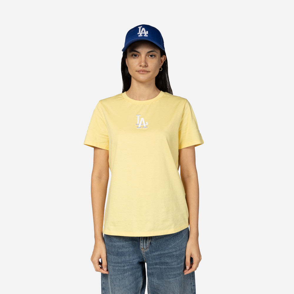 Esta Playera Manga Corta New Era para Mujer de Los Angeles Dodgers de la colección Women's League Essentials presenta un diseño con el logotipo de los Dodgers en la parte frontal y el flag de New Era bordado en la manga izquierda. Cómprala ya.