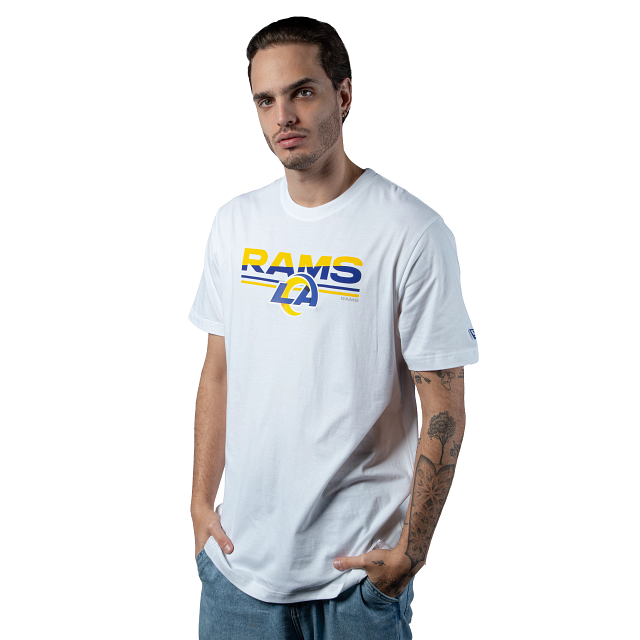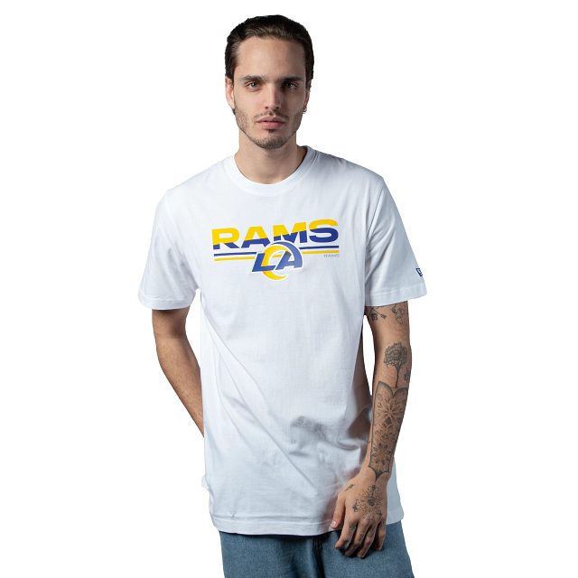 Esta Playera Manga Corta New Era de Los Angeles Rams de la colección NFL 3rd Down 2023 presenta un elegante diseño en color blanco con el logotipo y nombre de los Rams en el frente y el flag de New Era bordado en la manga izquierda. Apoya a tu equipo y cómprala ya.