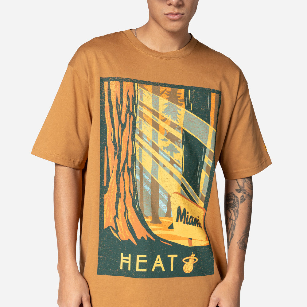 Esta Playera Manga Corta New Era de Miami Heat de la colección NBA All-Star Game Fan Pack 2025 presenta una imagen inspirada en la naturaleza estampada con el nombre y logo de los Heat en la parte frontal y el flag de New Era bordado en la manga izquierda. Apoya a tu equipo y cómprala ya.