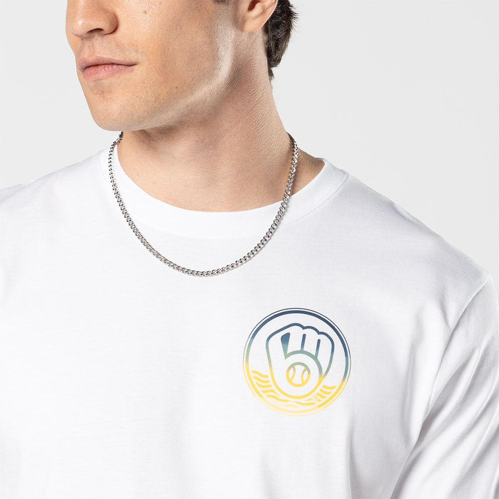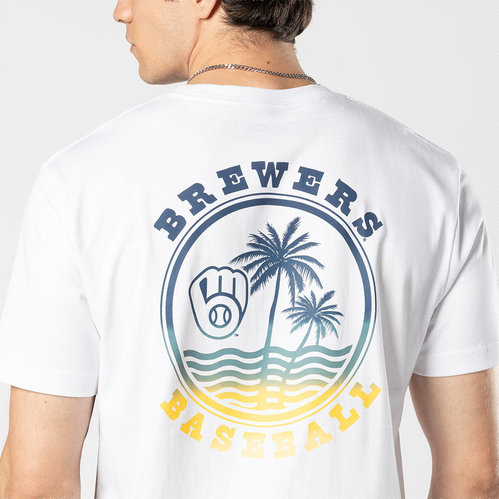 Este Playera Manga Corta New Era de Milwaukee Brewers de la colección MLB Summer presenta el logotipo de los Brewers en la parte frontal izquierda, el nombre y logo del equipo junto con unas palmeras y ondas de mar en la parte de atrás, y el flag de New Era bordado en la manga izquierda. Cómprala ya.
