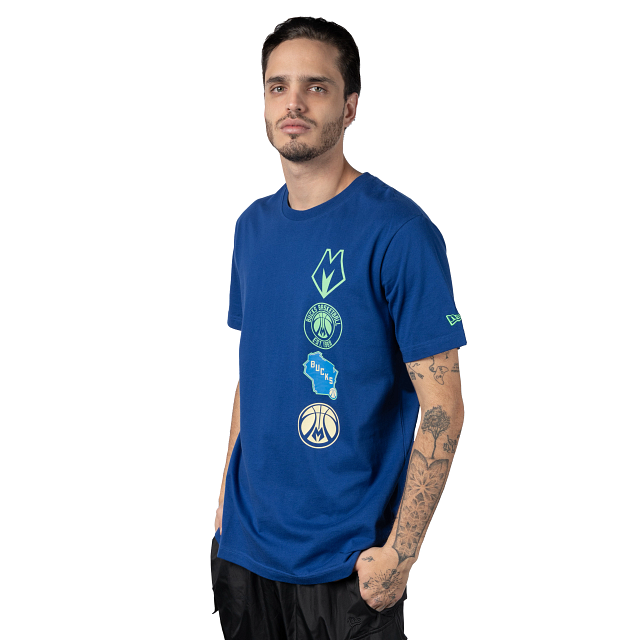 Esta Playera Manga Corta New Era de Milwaukee Bucks de la colección NBA City Edition presenta un diseño del color del equipo con múltiples logotipos de los Bucks estampados al frente, y el flag de New Era bordado en la manga izquierda. Dale un toque a tu outfit y apoya a tu equipo. Cómprala ya.