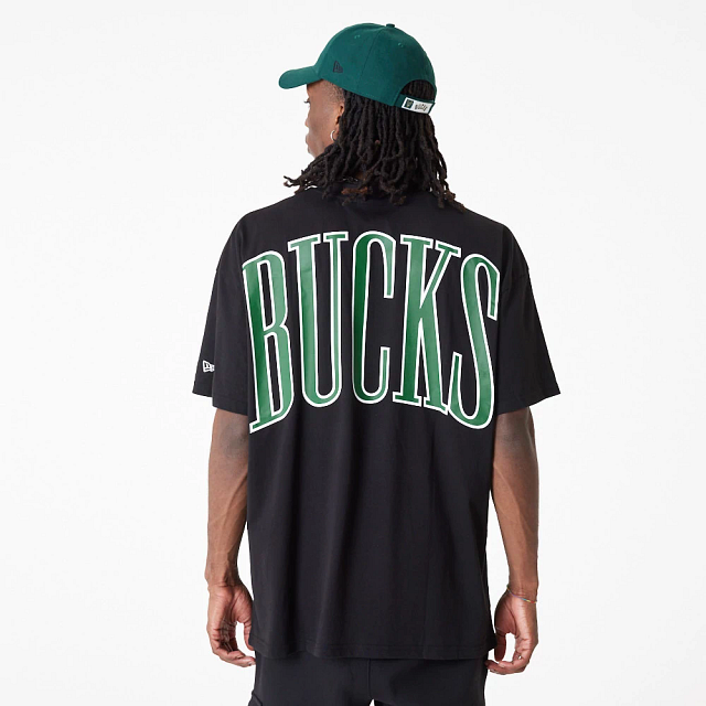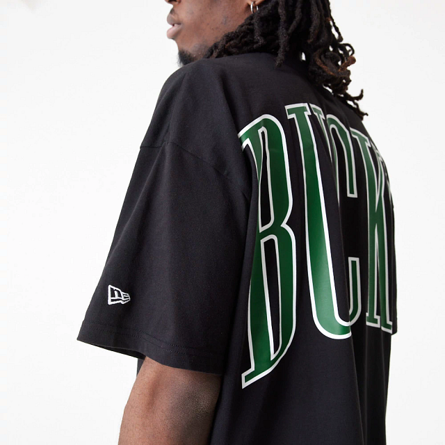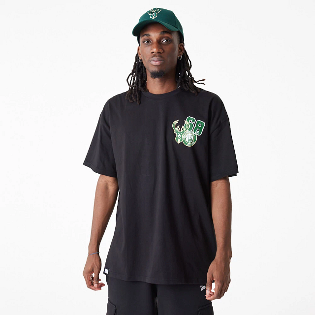 Esta Playera Manga Corta New Era de Milwaukee Bucks de la colección NBA Fashion Lifestyle presenta un diseño moderno estilo oversize color negro con el logotipo de los Bucks al frente, el nombre en grande al reverso, y el flag de New Era en la parte baja. Dale un toque a tu outfit y cómprala ya.