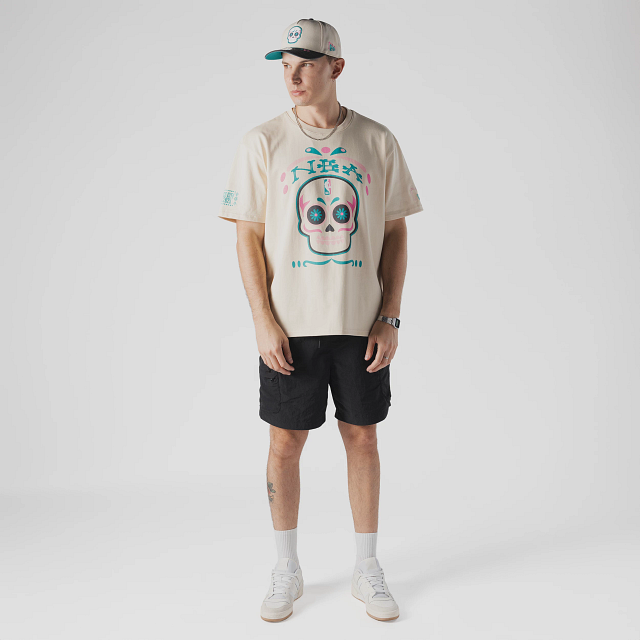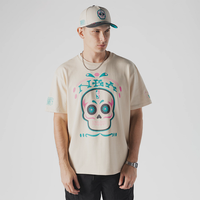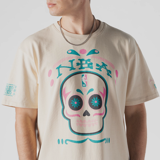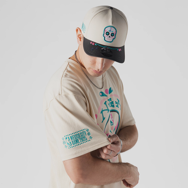 Esta Playera Manga Corta New Era de la colección NBA Mexico City Game 2025 presenta el nombre de la NBA y una calaverita de azúcar con el logotipo de la liga en la parte frontal, NBA Mexico City Game 2025 en la manga derecha, el logo de la NBA en la parte de atrás del cuello y el flag de New Era bordado en la manga izquierda. Cómprala ya.