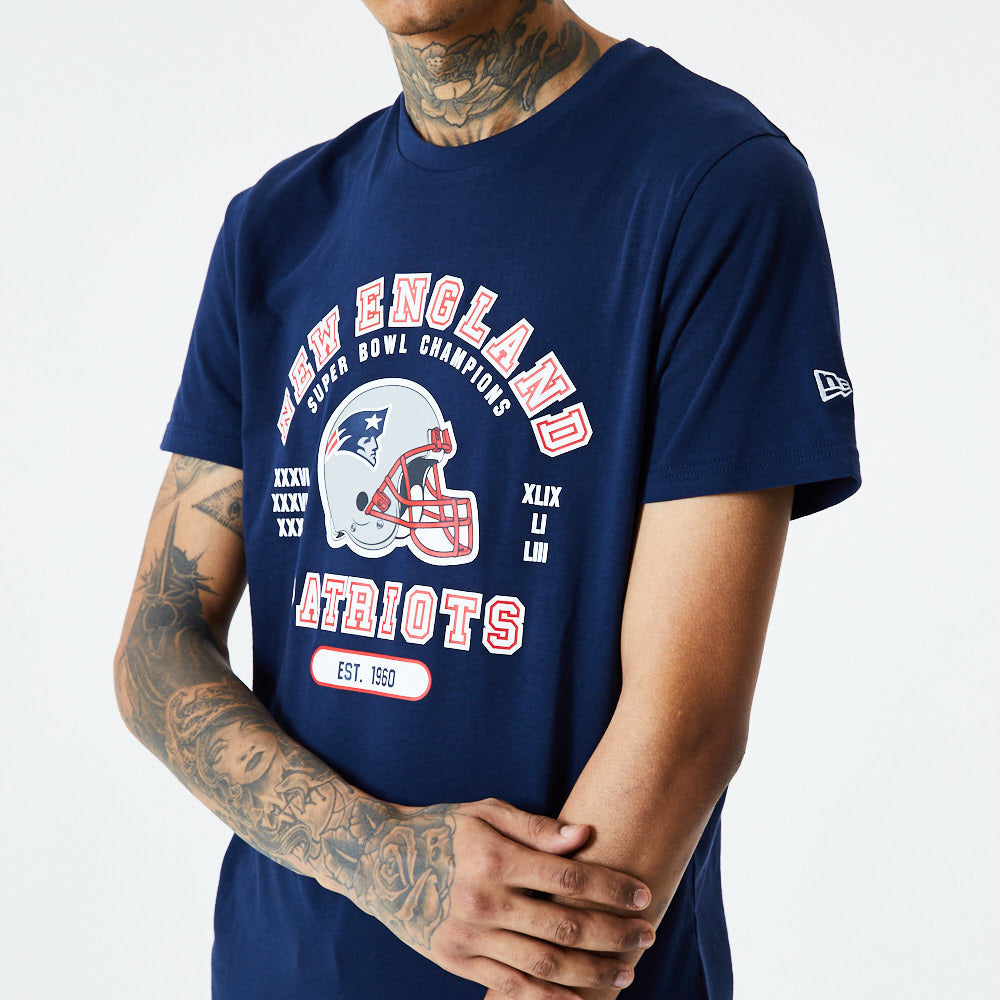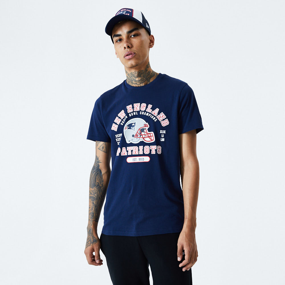 Esta Playera Manga Corta New Era de New England Patriots de la colección NFL Helmet presenta el nombre de los Patriots y un casco de futbol americano con el logo del equipo en la parte frontal y el flag de New Era bordado en la manga izquierda. Cómprala ya.
