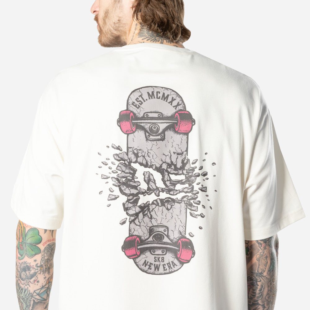 Esta Playera Manga Corta New Era de la colección Broken Skateboard presenta el nombre de New Era MCMXX SK8 estampado en la parte frontal izquierda, una imagen de una patineta quebrándose estampada en la parte de atrás el flag de New Era bordado en la manga izquierda. Completa tu outfit y cómprala ya.