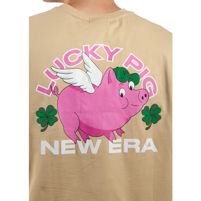 Esta Playera Manga Corta New Era de la colección New Era Character presenta un estampado pequeño al frente y otro al reverso cubriendo toda la espalda con un puerquito, tréboles y Lucky Pig New Era, y el flag bordado en la manga izquierda. Luce con estilo y cómprala ya.