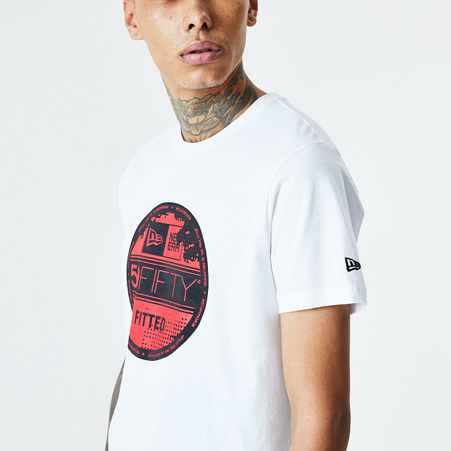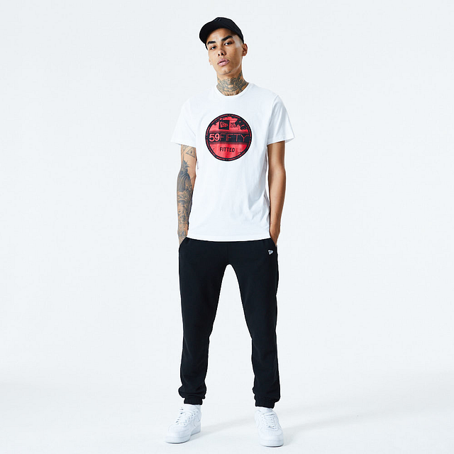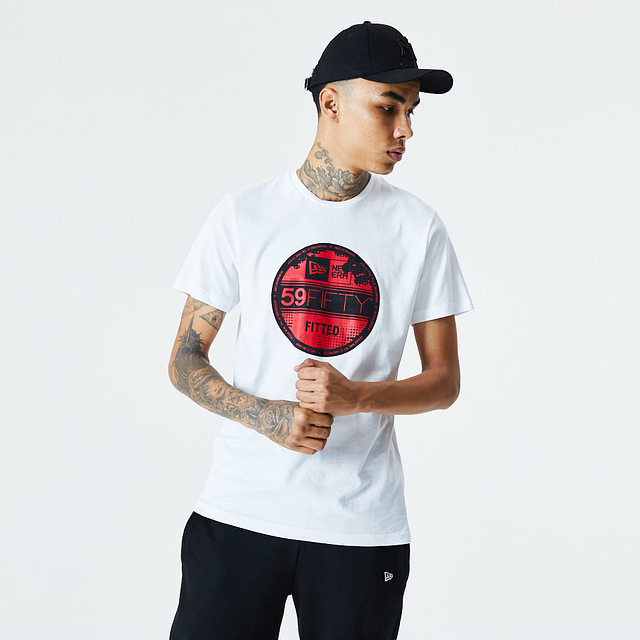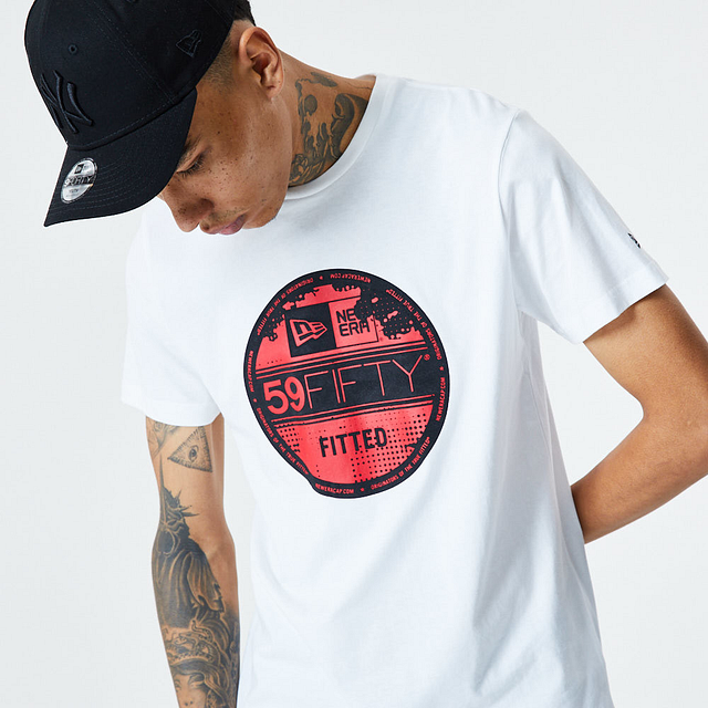 Esta Playera Manga Corta New Era de la colección New Era Essentials presenta un diseño blanco con la mítica etiqueta New Era de las gorras 59FIFTY estampado en grande cubriendo todo el frente, y el flag de New Era bordado en la manga izquierda. Luce con estilo y cómprala ya.