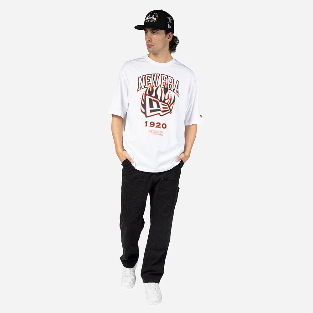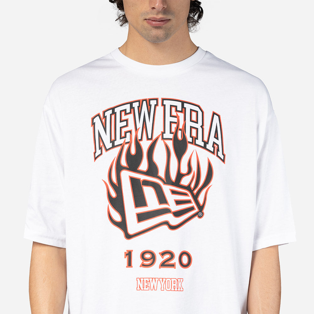 Esta Playera Manga Corta New Era de la colección Flames presenta un diseño con el nombre y logotipo de New Era en llamas de fuego en la parte frontal y el flag de New Era bordado en la manga izquierda. Luce con estilo y cómprala ya.