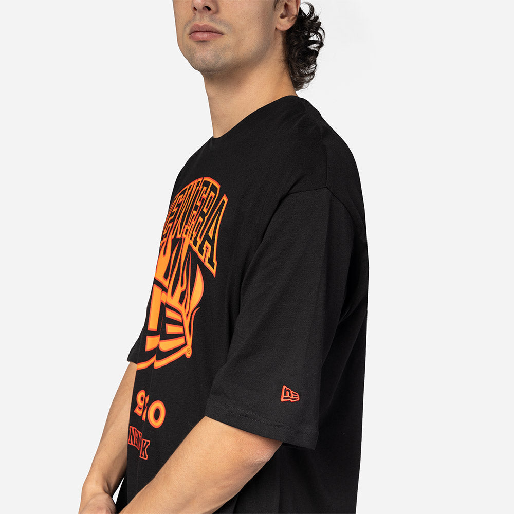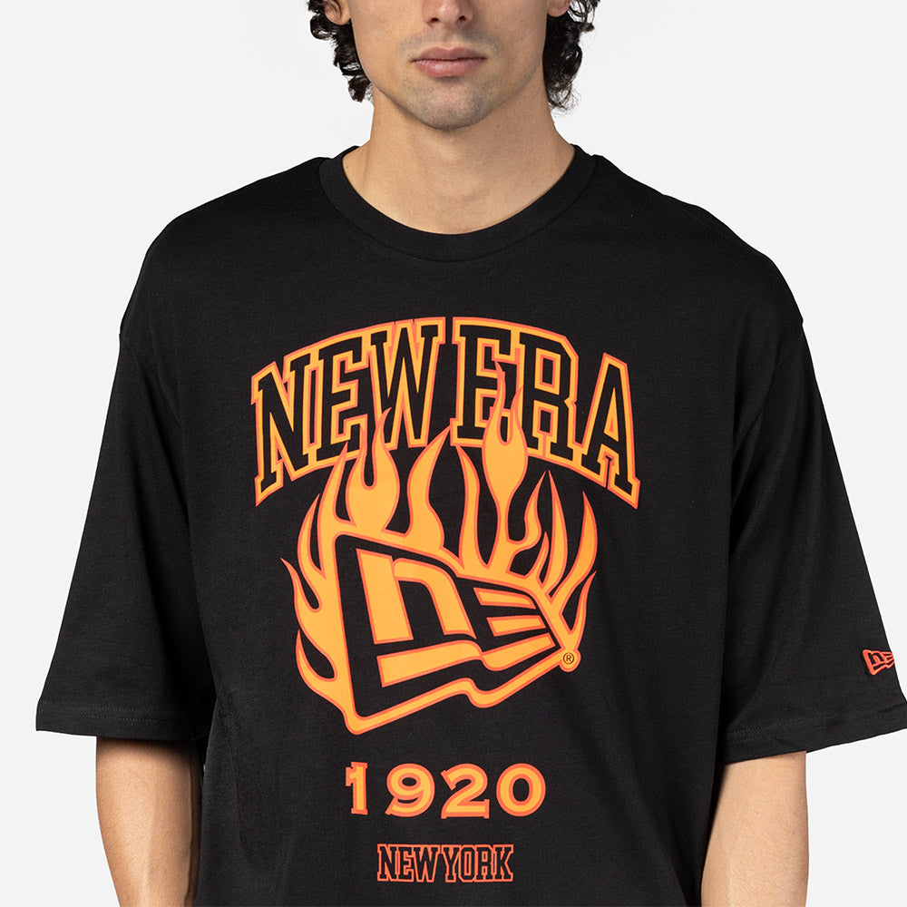 Esta Playera Manga Corta New Era de la colección Flames presenta un diseño con el nombre y logotipo de New Era en llamas de fuego en la parte frontal y el flag de New Era bordado en la manga izquierda. Luce con estilo y cómprala ya.