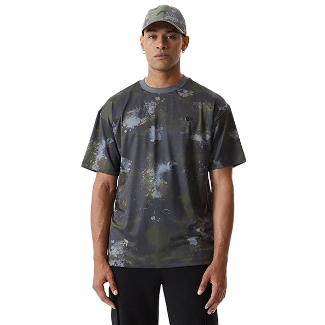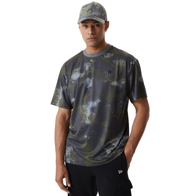 Playera New Era oversized mesh 100% poliéster con estampado completo camo. Terminado con un canalé plano en mangas y cuello y la bandera de New Era bordada directamente en el pecho de lado izquierdo.