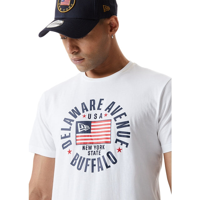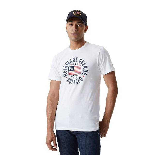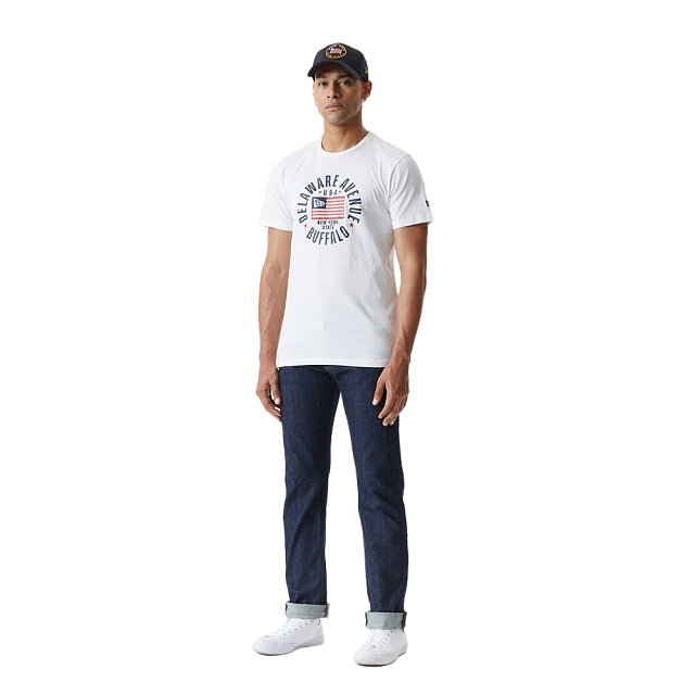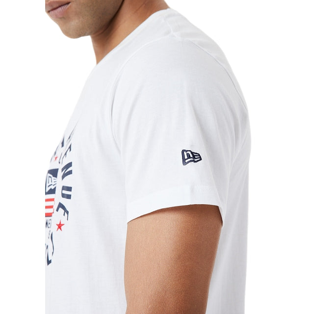 Playera New Era 100% de algodón con bordado New Era y estampado en el centro del frente. Terminado con el bordado directo de la bandera de New Era en la manga izquierda.