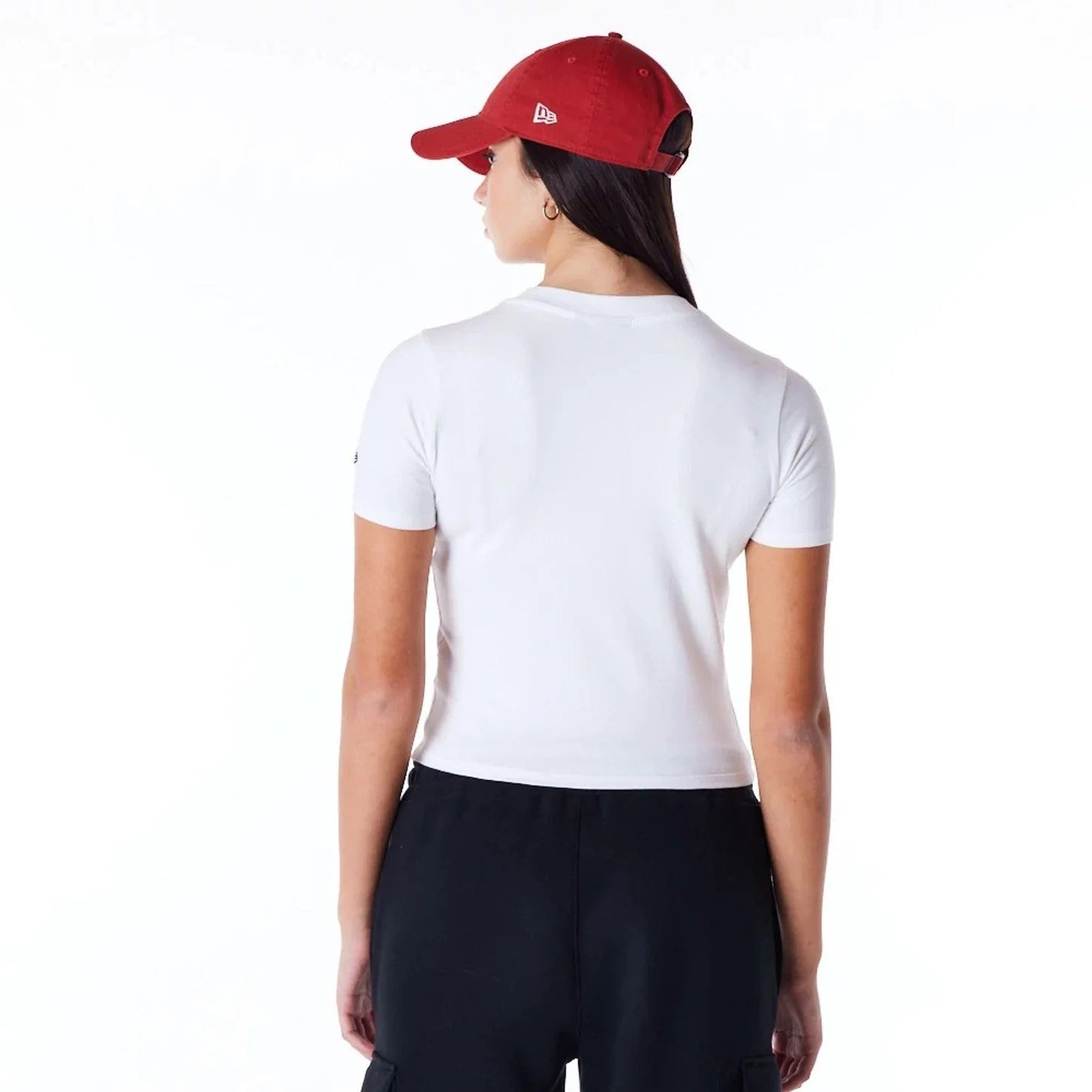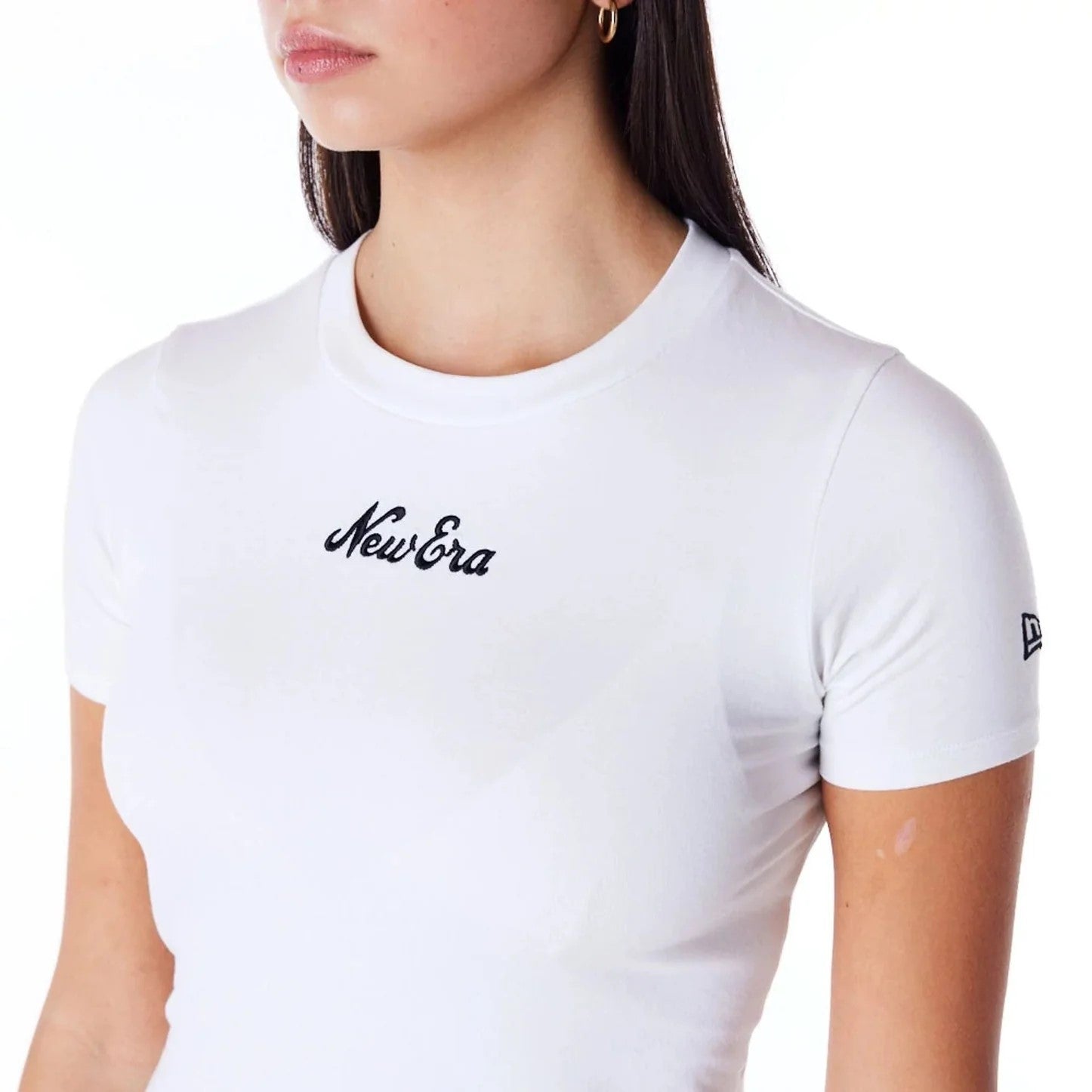Esta Playera Manga Corta New Era para Mujer de la colección New Era Script presenta el script de New Era bordado en la parte frontal y el flag de New Era bordado en la manga izquierda. Cómprala ya.