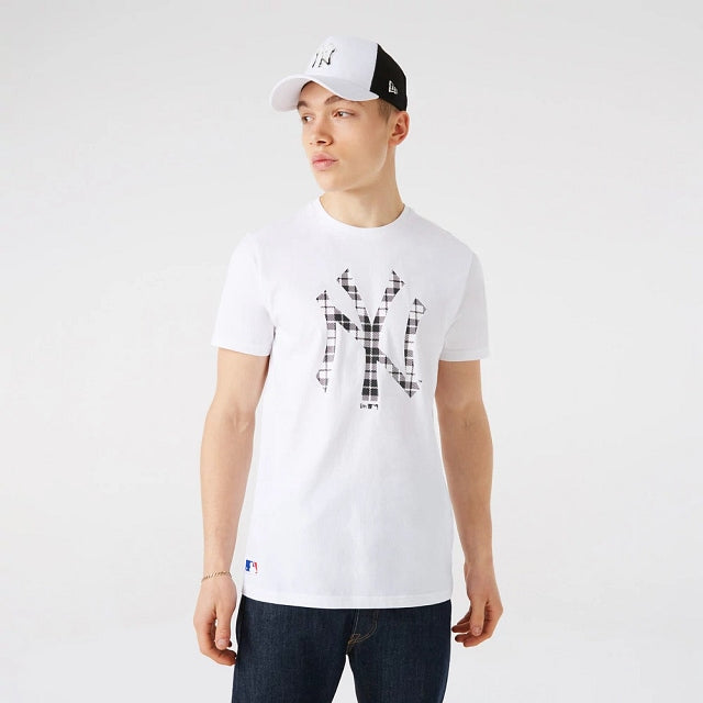 Esta Playera Manga Corta de New York Yankees Logo Infill presenta el logotipo del equipo en grande abarcando todo el pecho con un estampado a cuadros estilo franela. Cómprala ya.