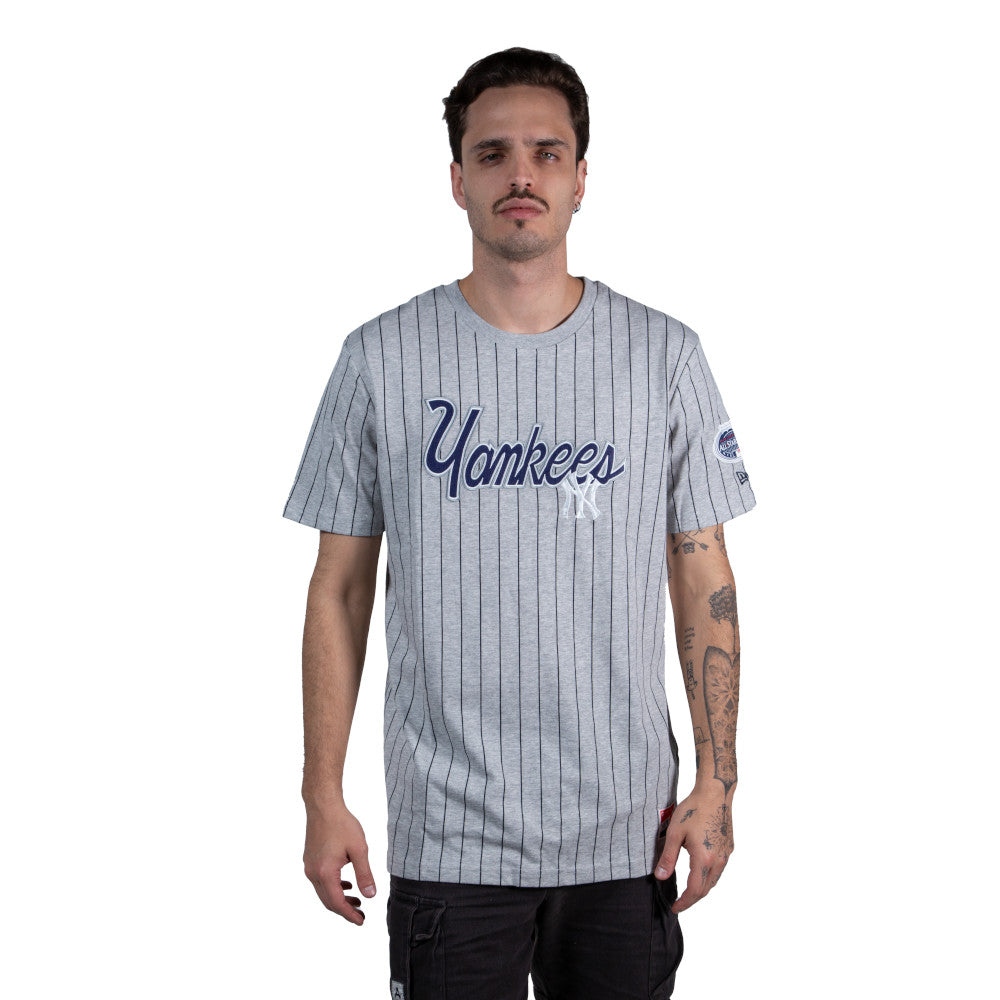 Esta Playera Manga Corta New Era de New York Yankees de la colección MLB Throwback presenta un diseño gris retro con rayas, el logotipo y nombre de los Yankees estampado al frente, el año del equipo en la espalda, y la etiqueta retro de New Era. Dale un toque a tu outfit y cómprala ya