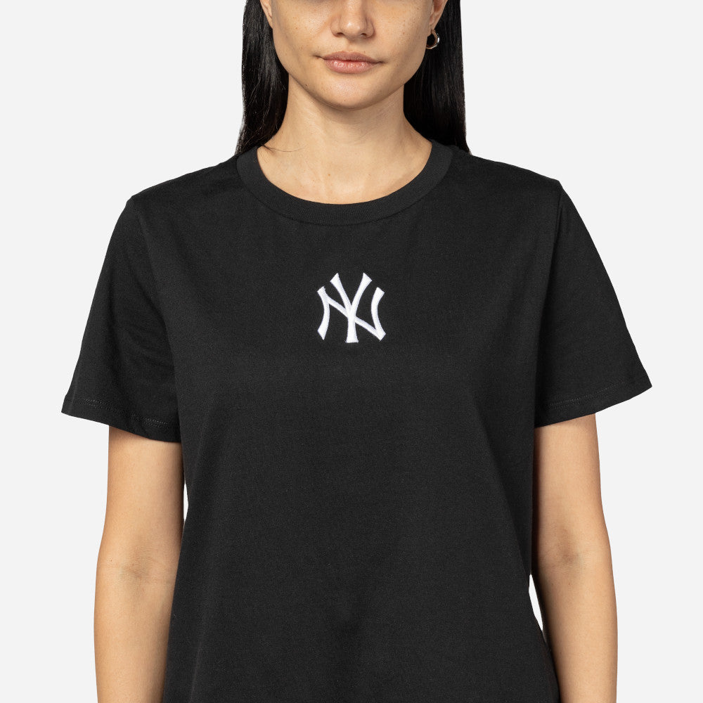 Esta Playera Manga Corta New Era para Mujer de New York Yankees de la colección Women's League Essentials presenta un diseño con el logotipo de los Yankees en la parte frontal y el flag de New Era bordado en la manga izquierda. Cómprala ya.