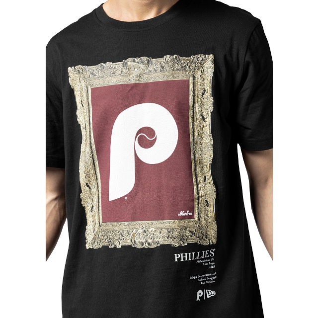 Esta Playera Manga Corta New Era de Philadelphia Phillies de la colección MLB Curated Customs presenta un elegante diseño negro con el logotipo de los Phillies expuesto al estilo de museo en un cuadro dorado antiguo, datos del equipo y el año de fundación como referencia a la obra y el flag New Era en la manga izquierda. Luce con estilo y cómprala ya.