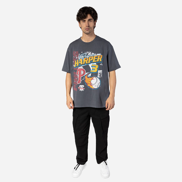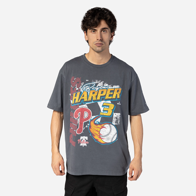 Esta Playera Manga Corta New Era de Philadelphia Phillies de la colección MLB Rally presenta un diseño gris avejentado con el nombre y número de Harper 3, el nombre y logotipo de los Phillies, y una bandera a cuadros y una bola de beis con fuego, y el flag de New Era bordado en la manga izquierda. Dale un toque a tu outfit y cómprala ya.